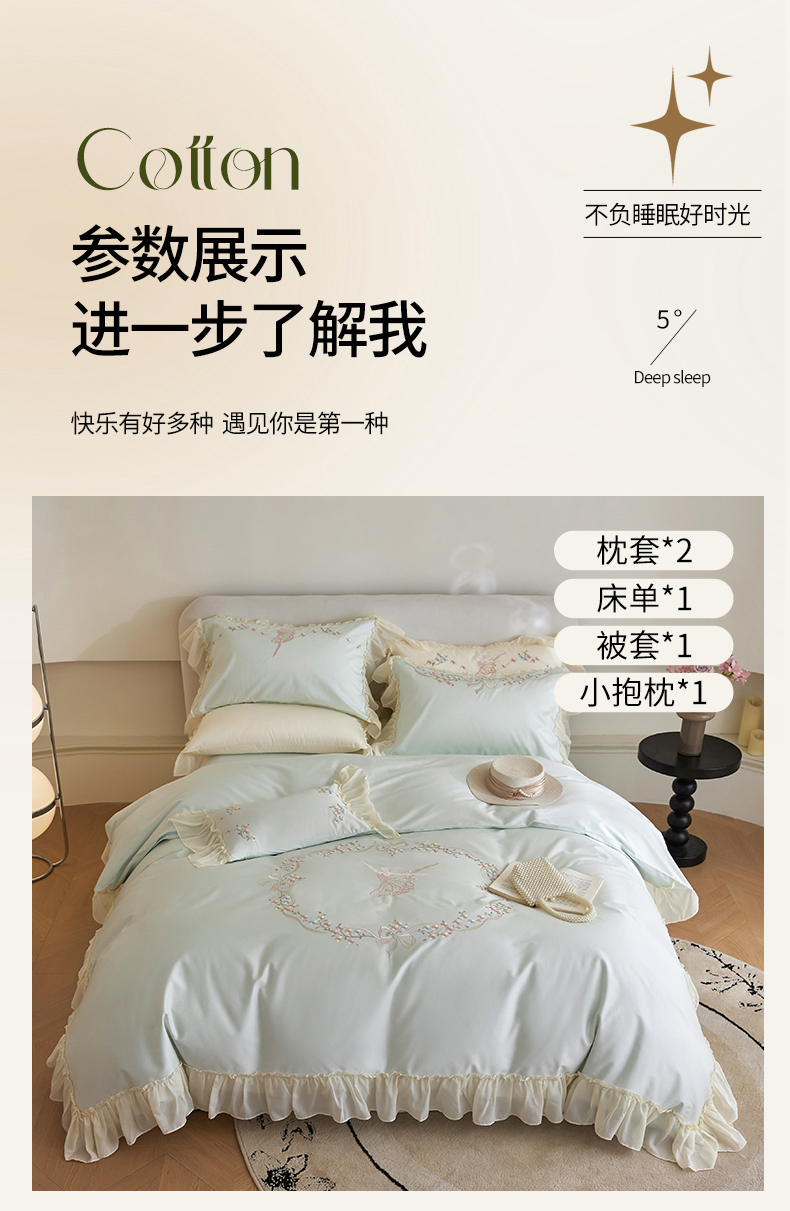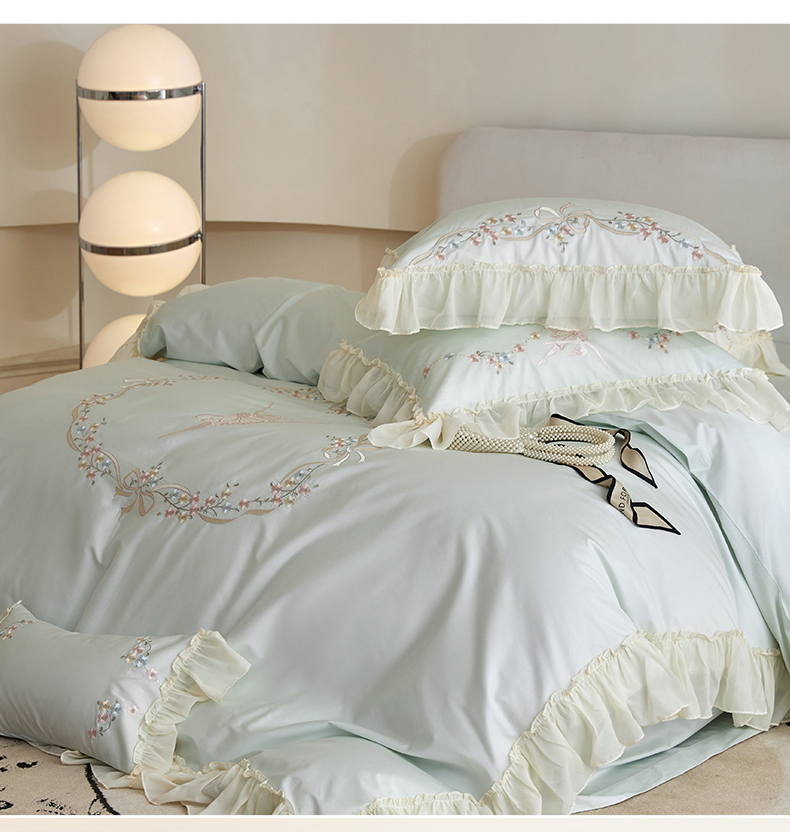 (总)2024新款100S澳棉双股贡缎长绒棉刺绣六件套-简约时光,粉,蓝,绿