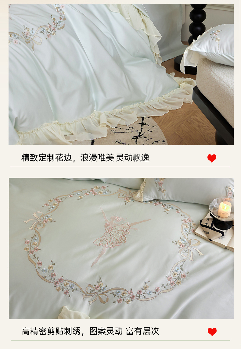 (总)嘉汀兰 2023新款60支全棉磨毛绣花撞色轻奢四件套—暮里,粉色,红灰色,芥绿色,浅灰色,深青色