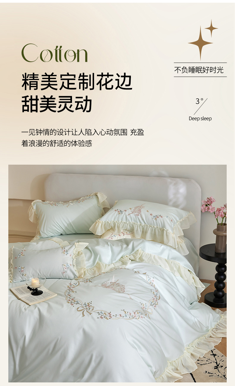 (总)嘉汀兰2025新款全棉臻品磨毛轻奢时尚秋冬加厚四件套-拼角款,浮生若梦,雾林-浅灰,星辰,杏花微雨,长相依-草绿
