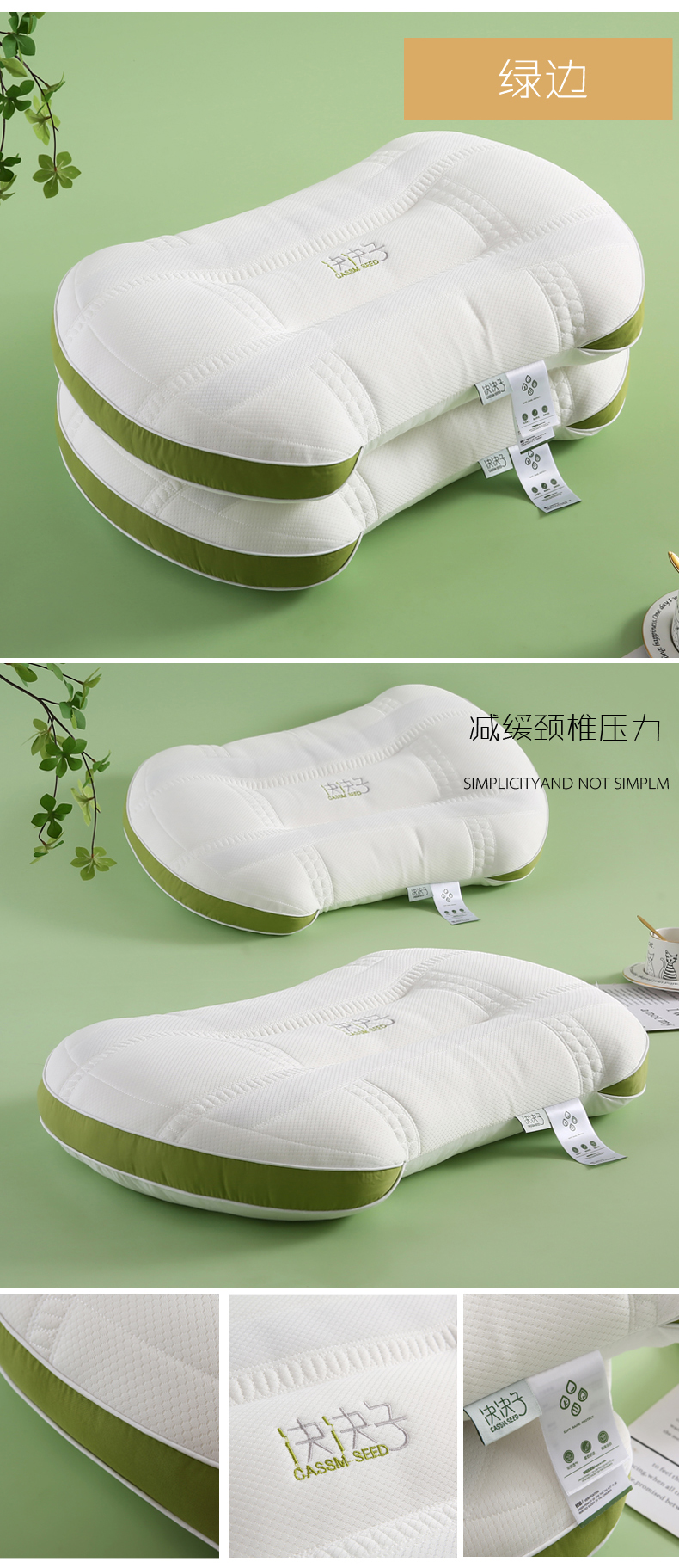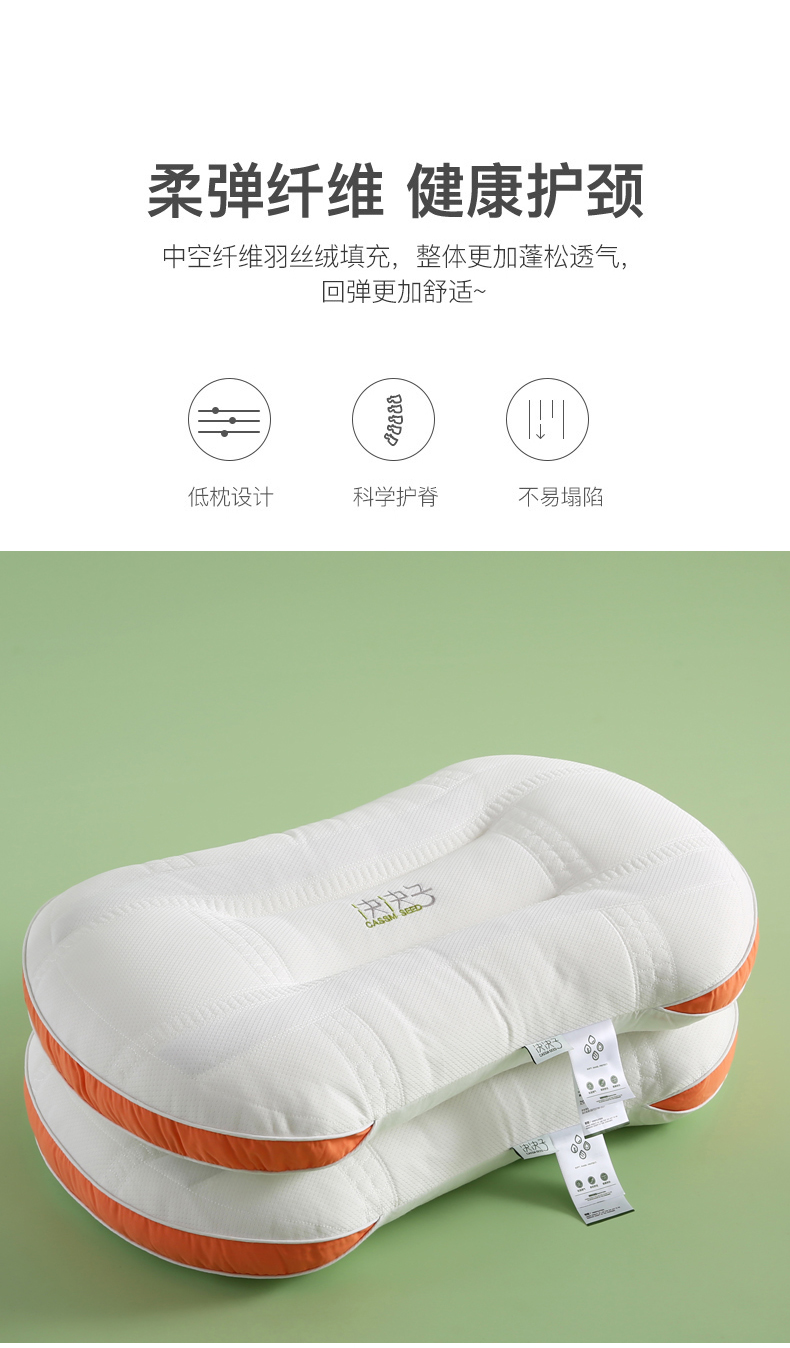 2022新品全棉防羽布低枕羽丝绒枕头水洗定型护颈单人枕芯,全棉防羽布简约定型低枕