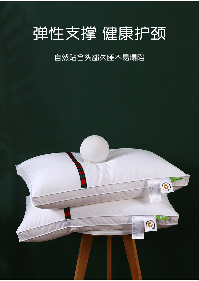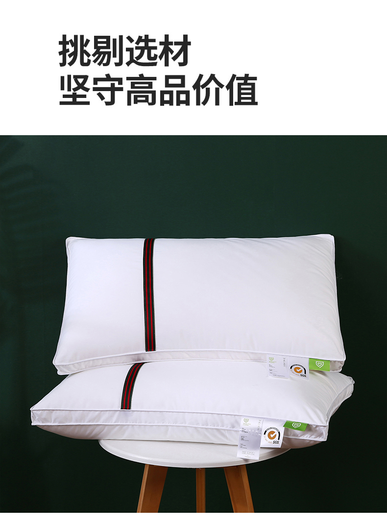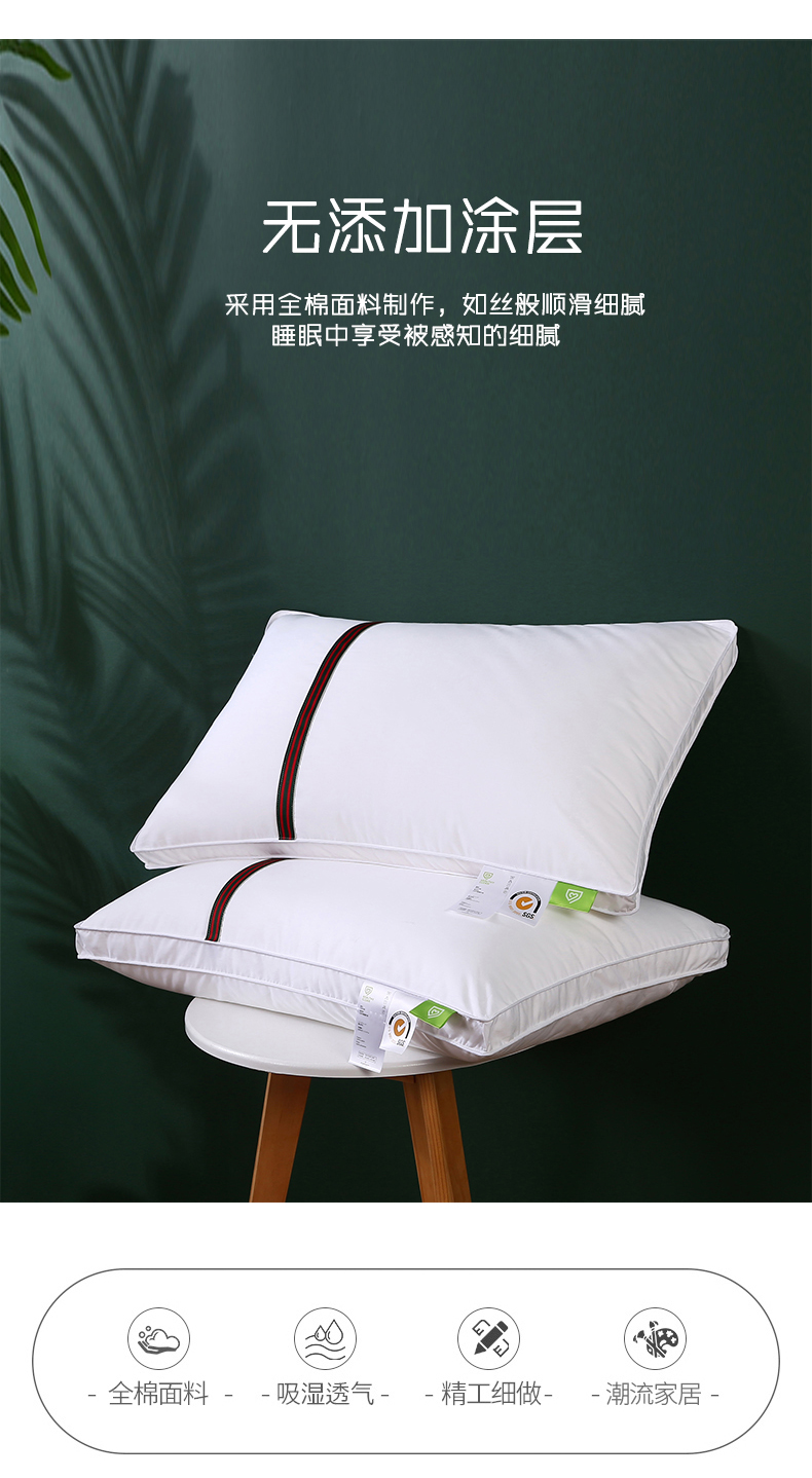 商品名称:沃兰国际 全棉133*100防羽布经典织带酒店布草羽丝绒枕头舒适枕芯 经典织带