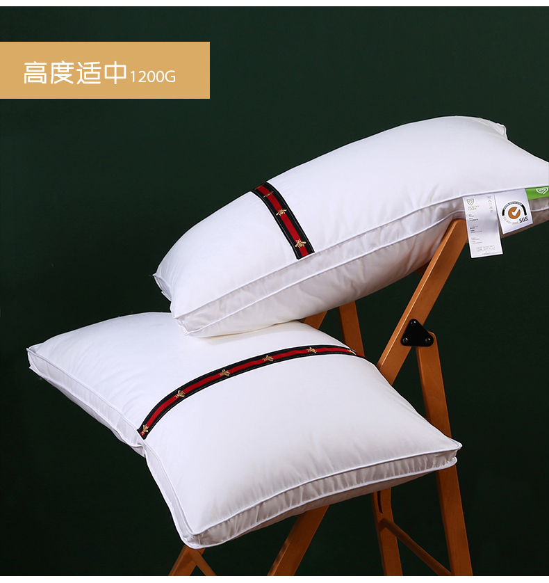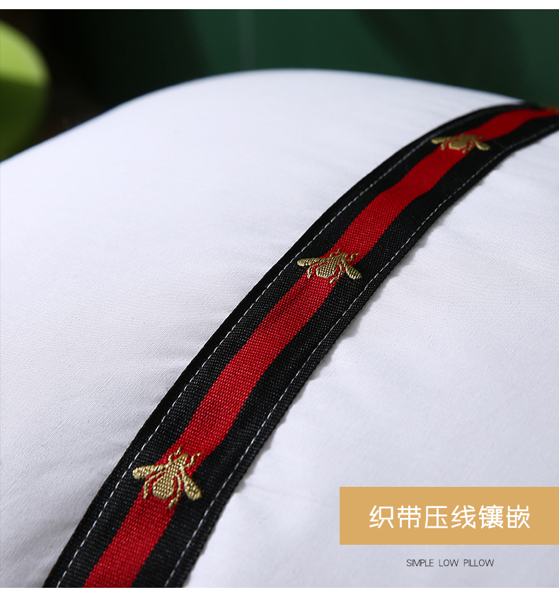 沃兰国际 全棉133*100防羽布经典织带酒店布草羽丝绒枕头舒适枕芯 经典织带