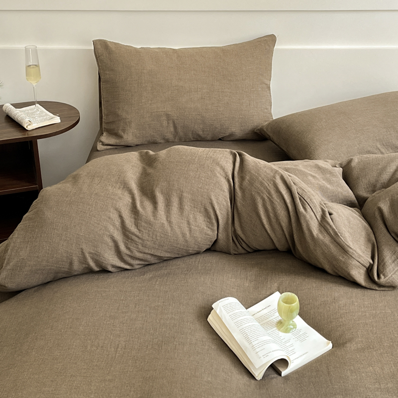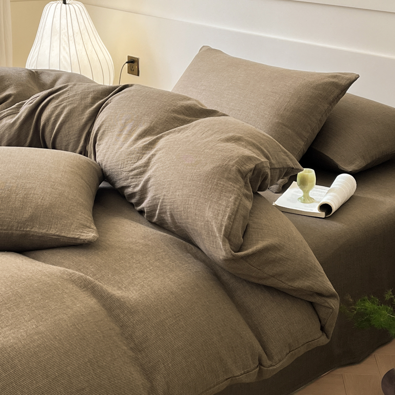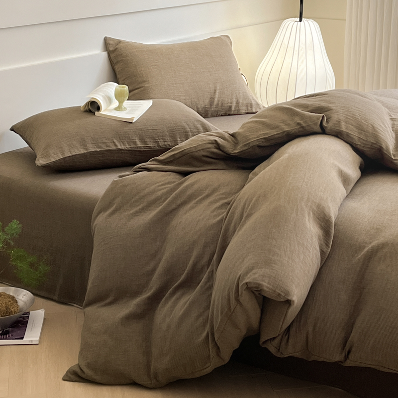 睡棉坊 2024新款全棉色织提花双层纱复古单被套 千喜格-咖
