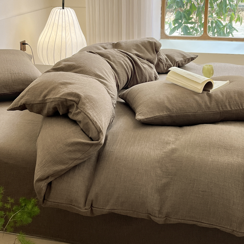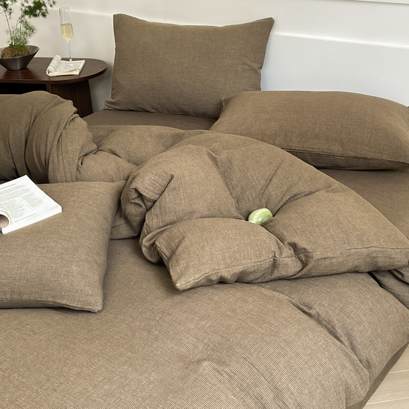 商品名称:睡棉坊 2024新款全棉色织提花双层纱复古单被套 千喜格-咖