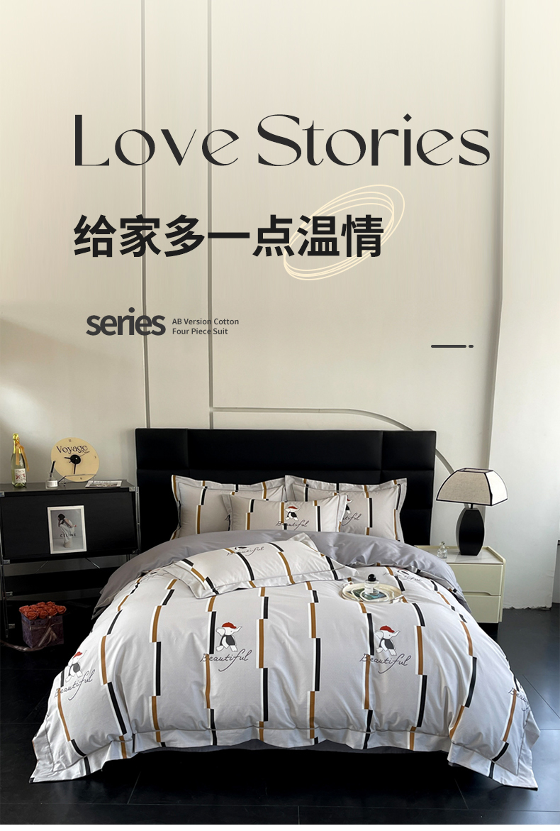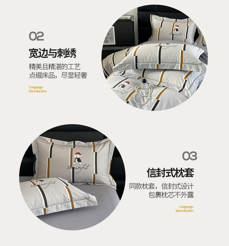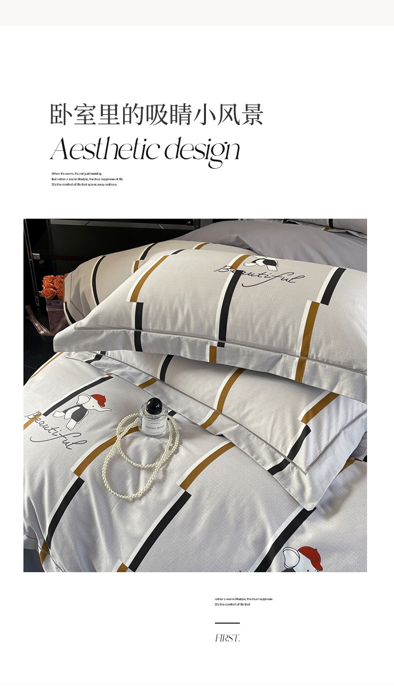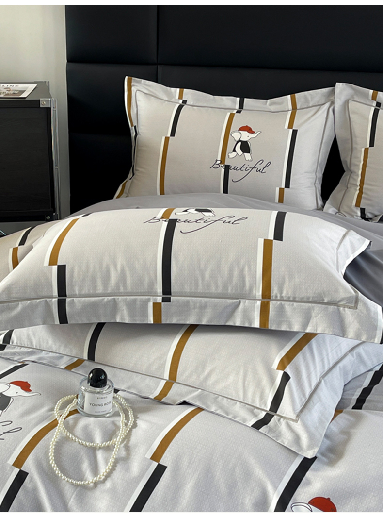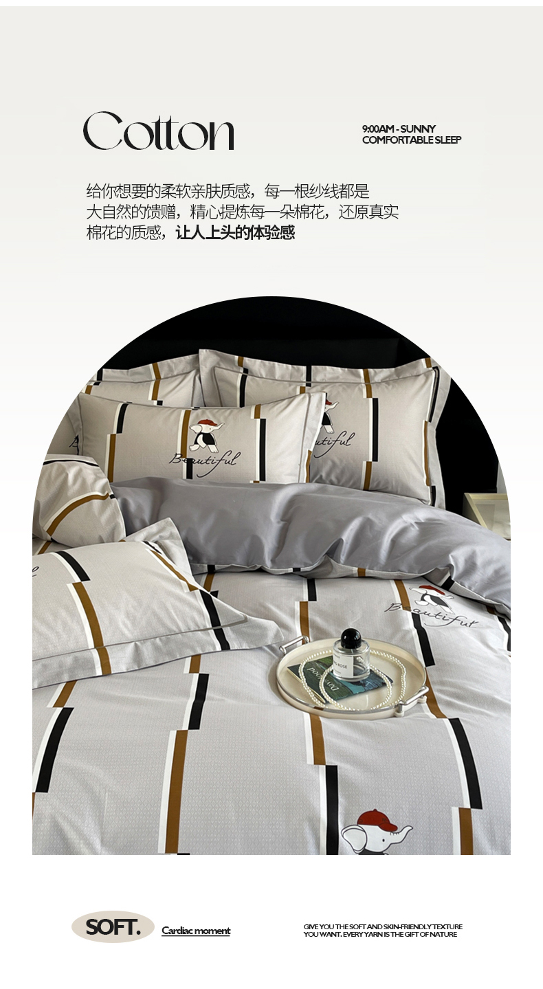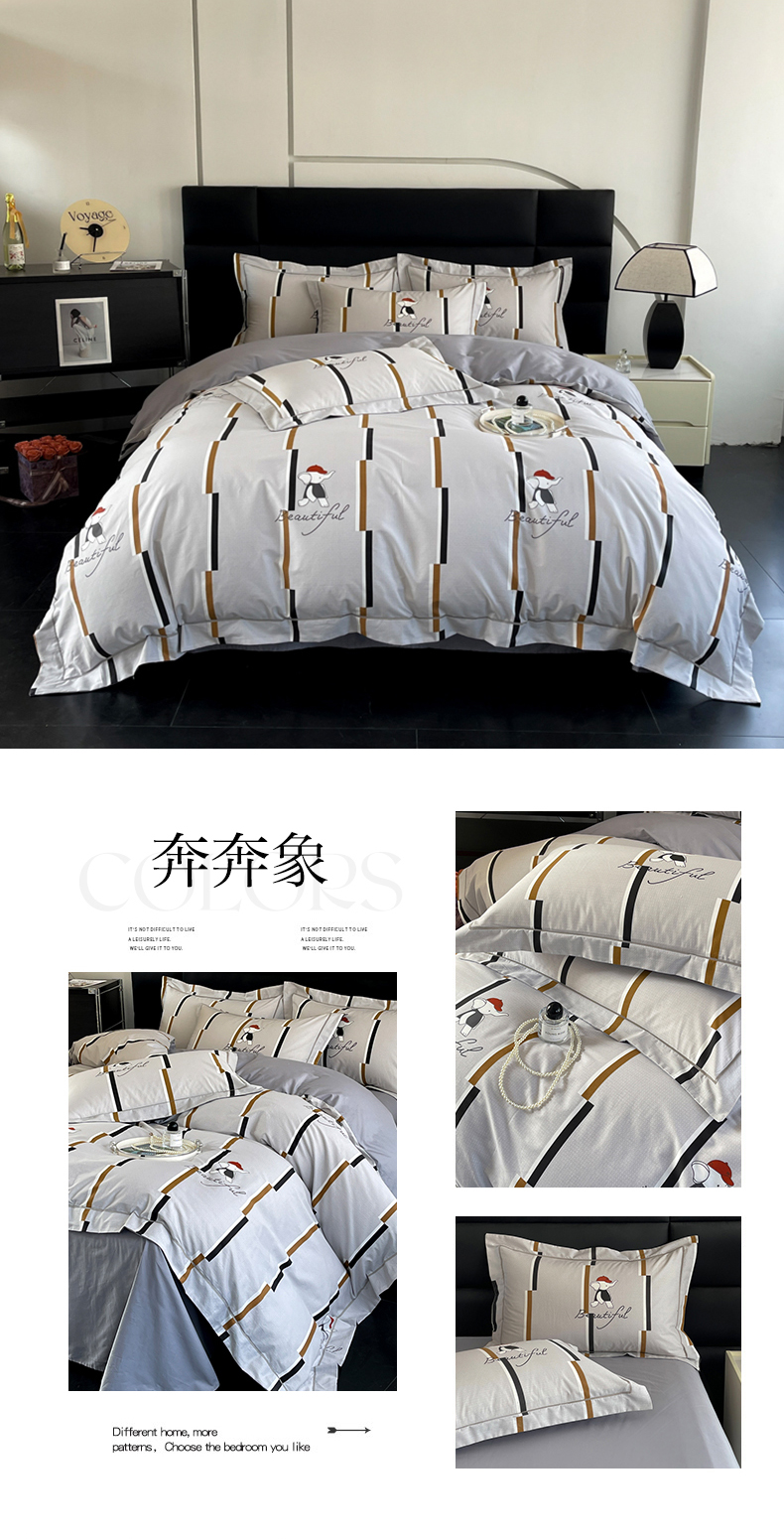 当前位置: 91家纺网 > 商品网购 > 床品套件 > 四件套 > 全棉普通四件套 > 7V 2024新款轻奢13376纯棉全棉喷气四件套 奔奔象