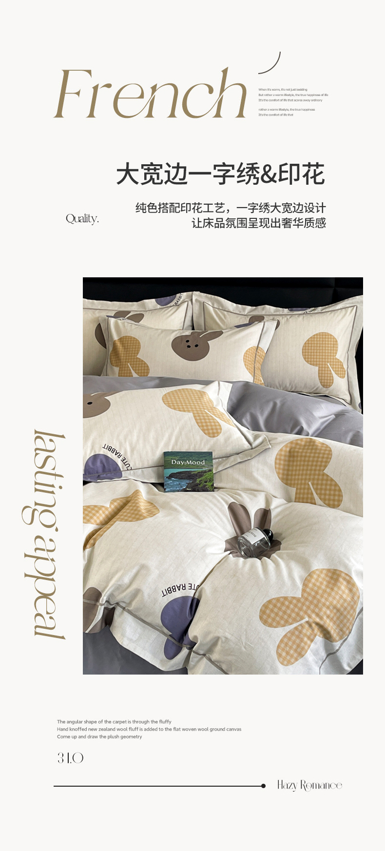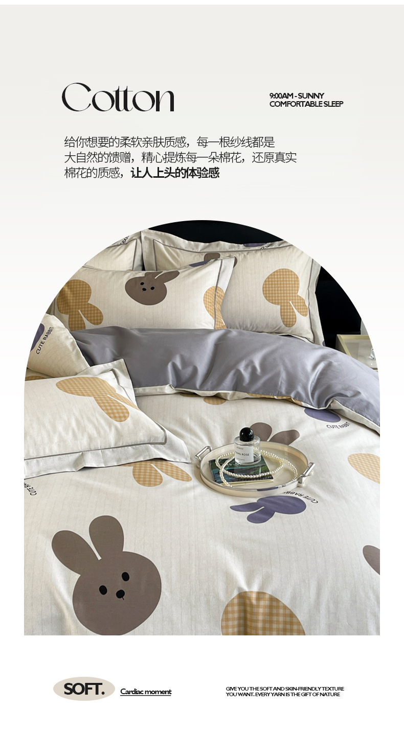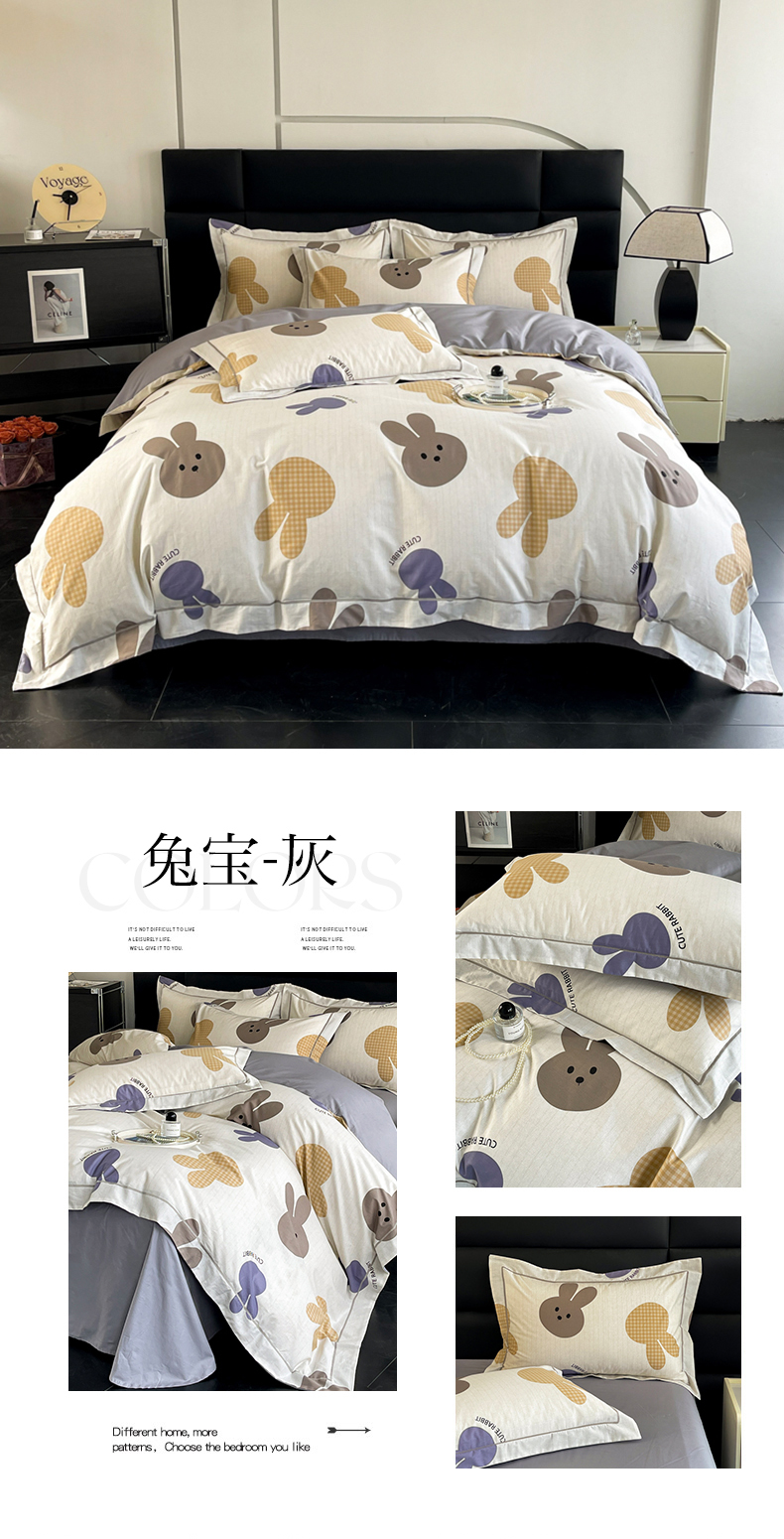 当前位置: 91家纺网 > 商品网购 > 床品套件 > 四件套 > 全棉普通四件套 > 7V 2024新款轻奢13376纯棉全棉喷气四件套 兔宝-灰