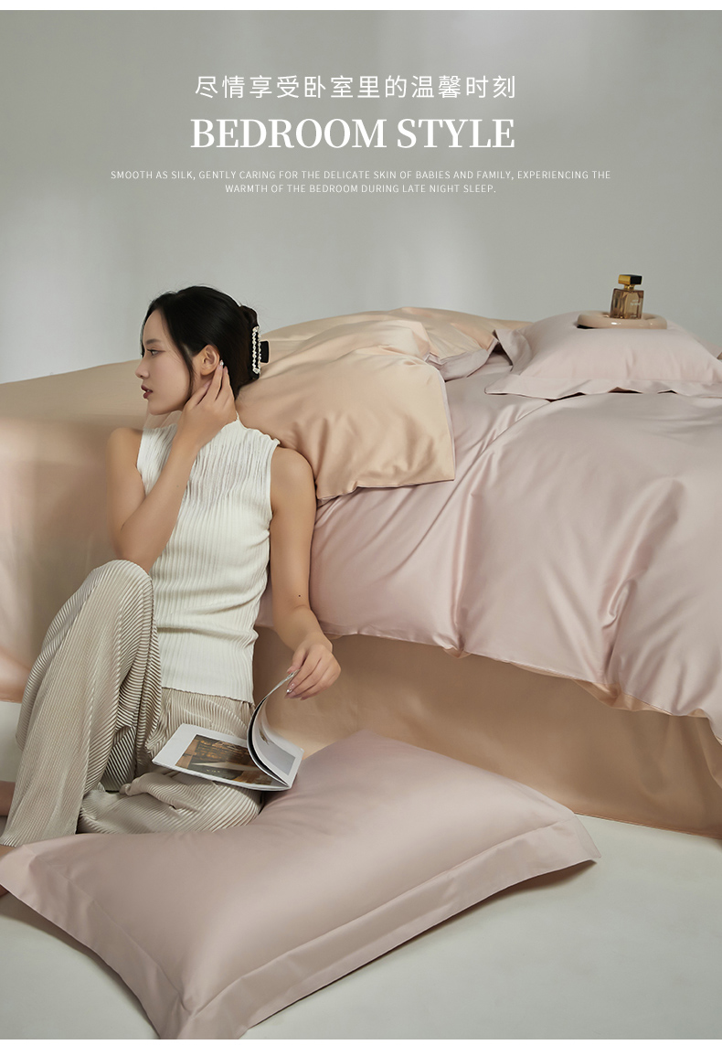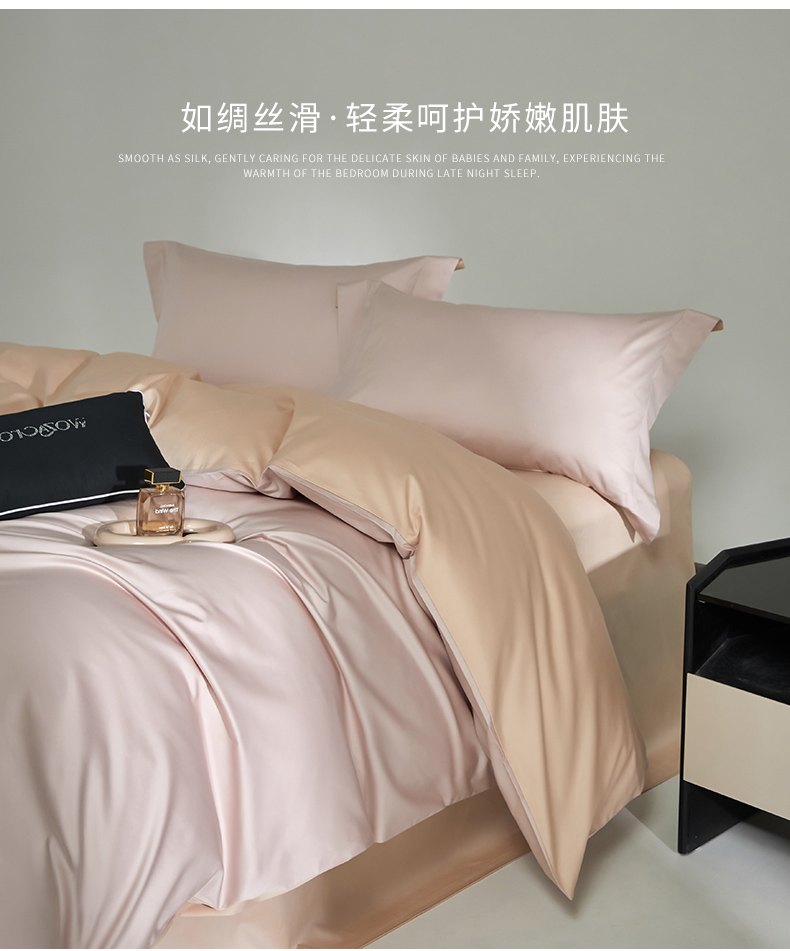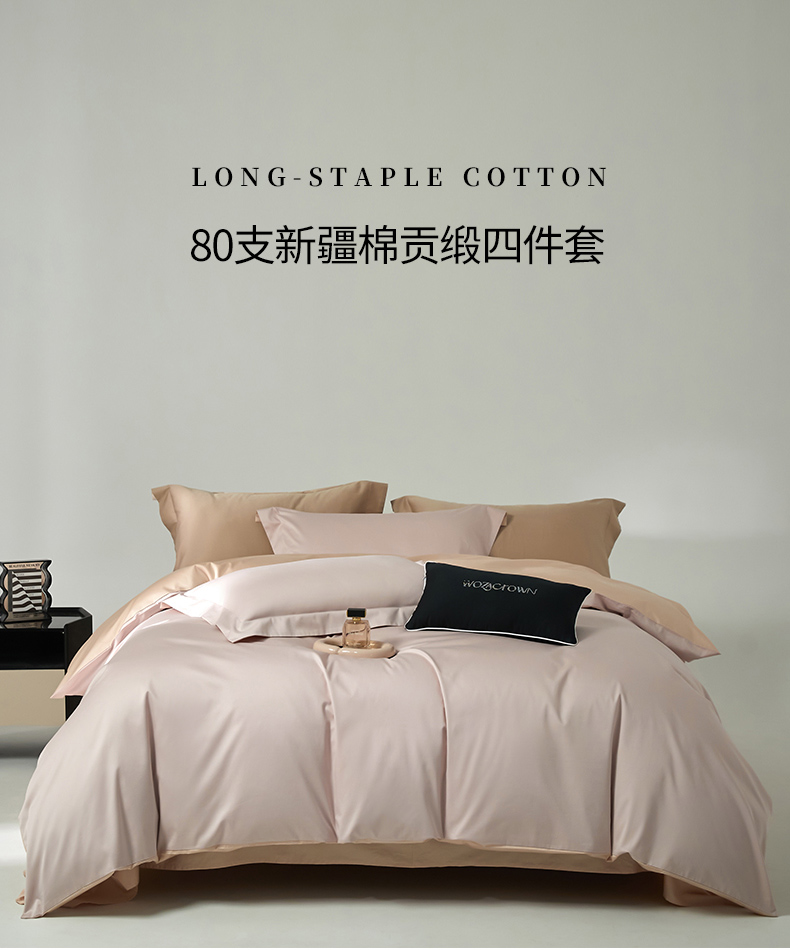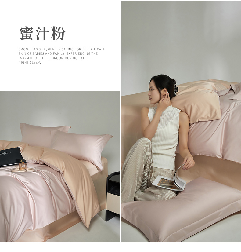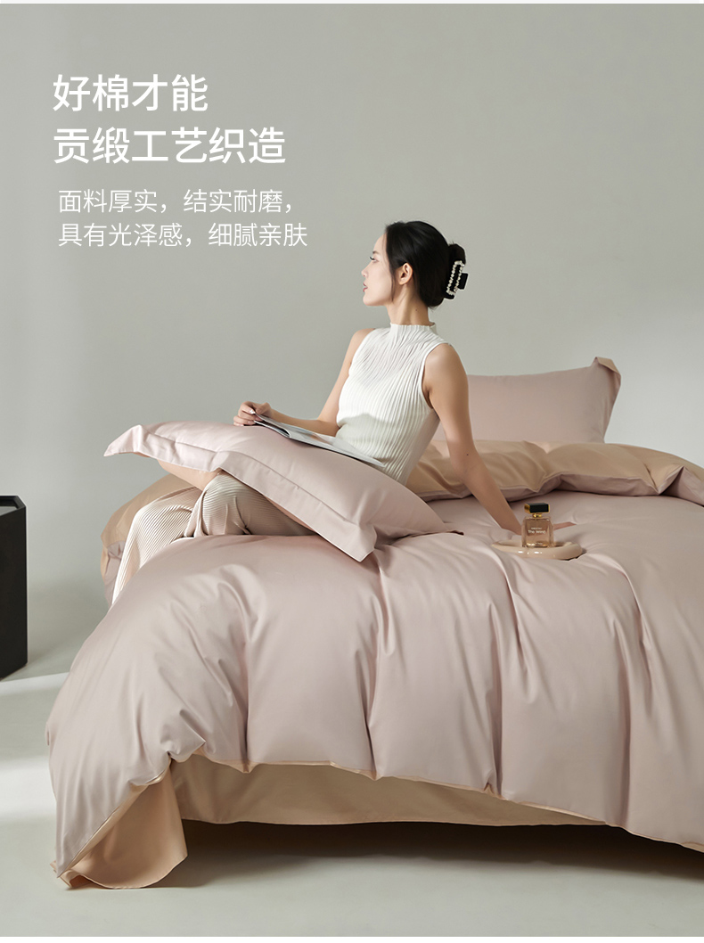 商品名称:爱缦 2024新款80支新疆棉A类贡缎四件套-极简系列 蜜汁粉