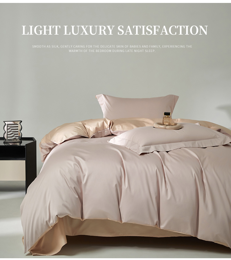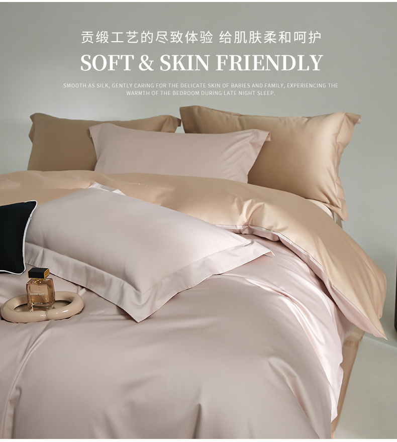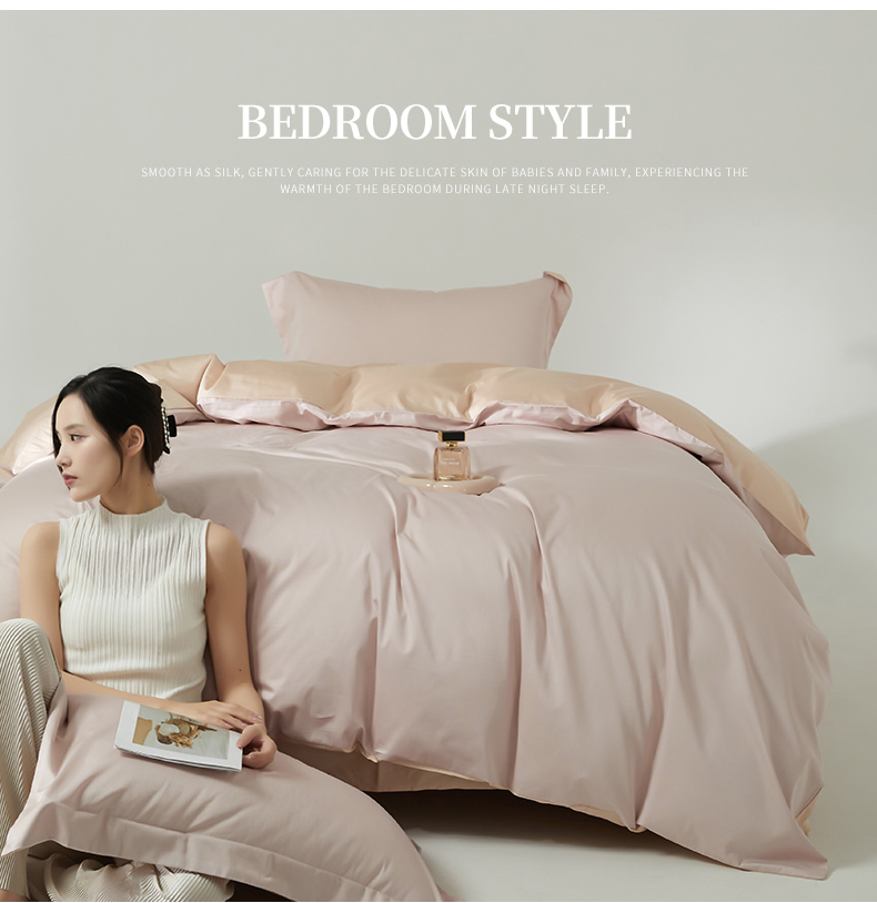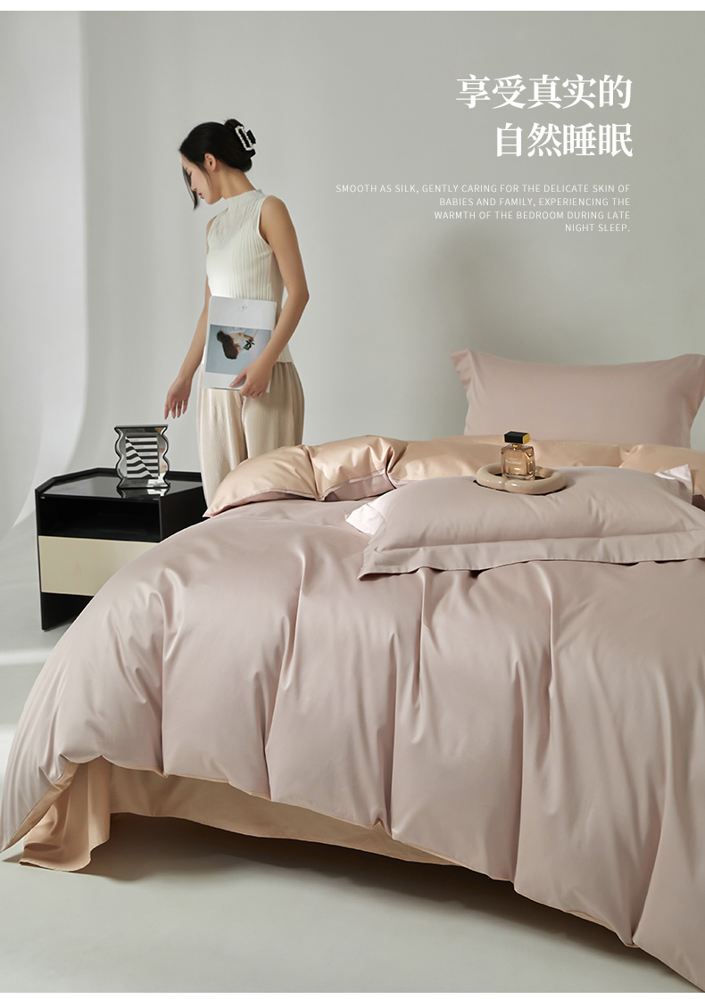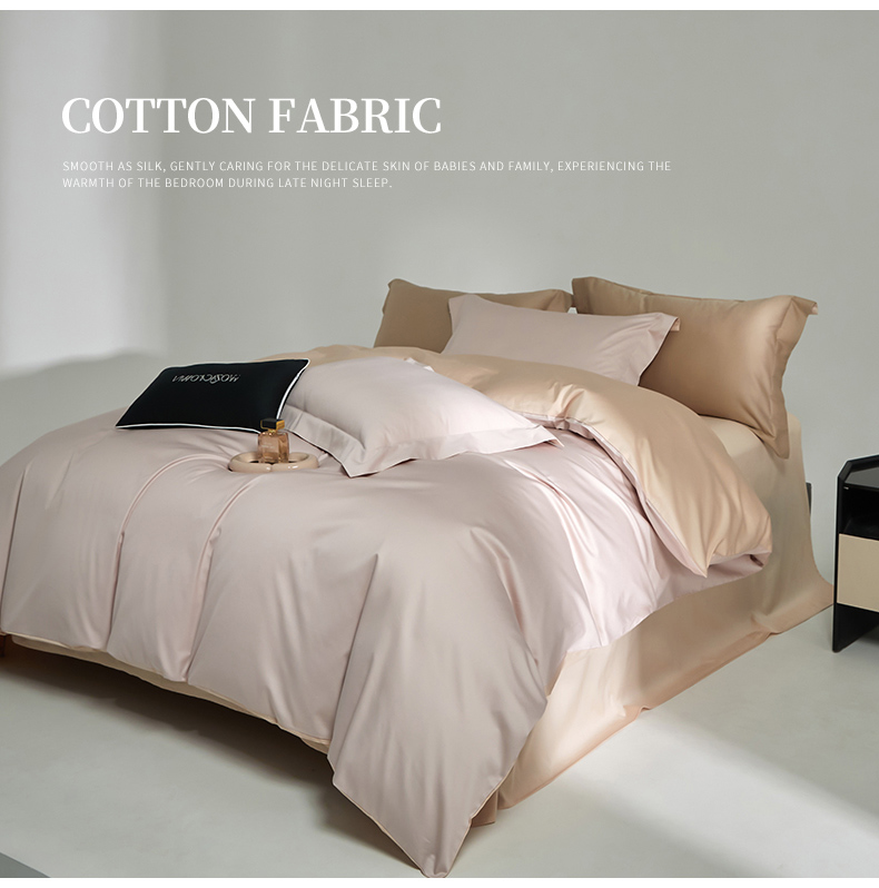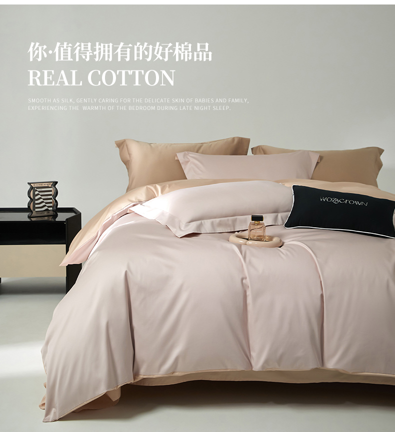 商品名称:爱缦 2024新款80支新疆棉A类贡缎四件套-极简系列 蜜汁粉