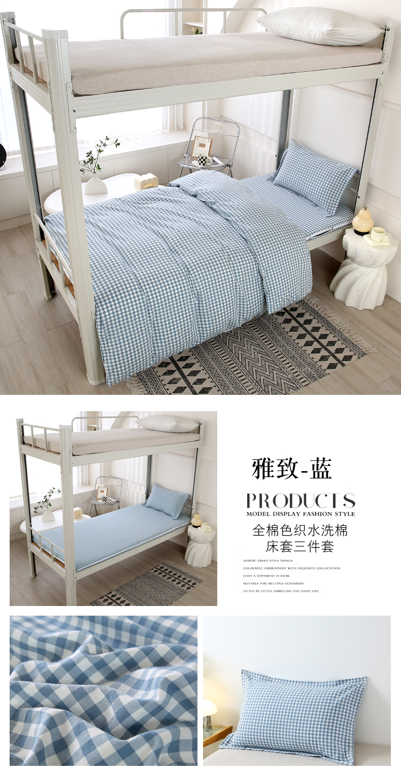 当前位置: 91家纺网 > 商品网购 > 床品套件 > 三件套 > 凌云家纺 2025新款A类全棉水洗棉床垫套三件套四件套学生宿舍 雅致-蓝