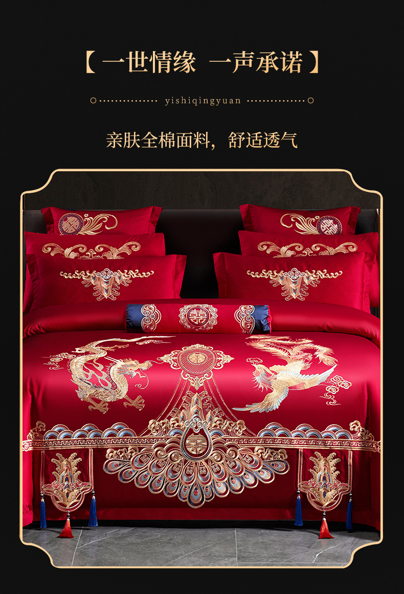 当前位置: 91家纺网 > 商品网购 > 床品套件 > 四件套 > 婚庆四件套 > 慕她家纺 2025新款慕她婚庆四件套全棉纯棉结婚刺绣花多件套六八十床品 龙翔凤舞