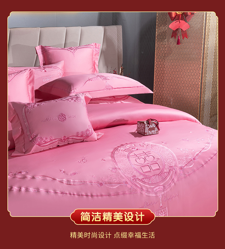 当前位置: 91家纺网 > 商品网购 > 床品套件 > 多件套 > 多件套 > 美娘阁 2025新款长绒棉贡缎提花新中式古典韵味精美刺绣婚庆四件套多件套 双临门-粉