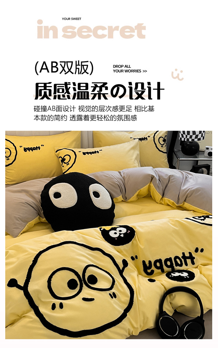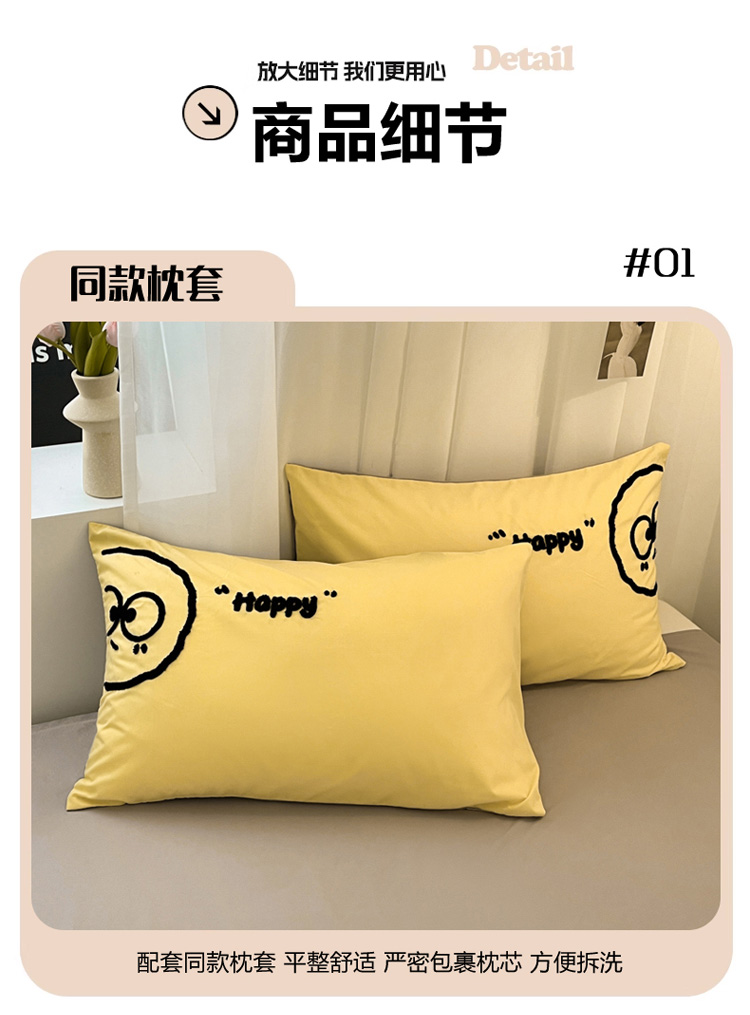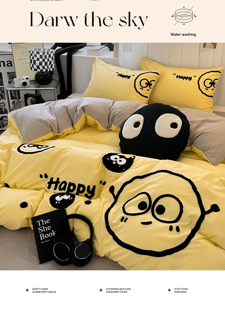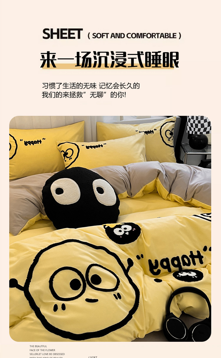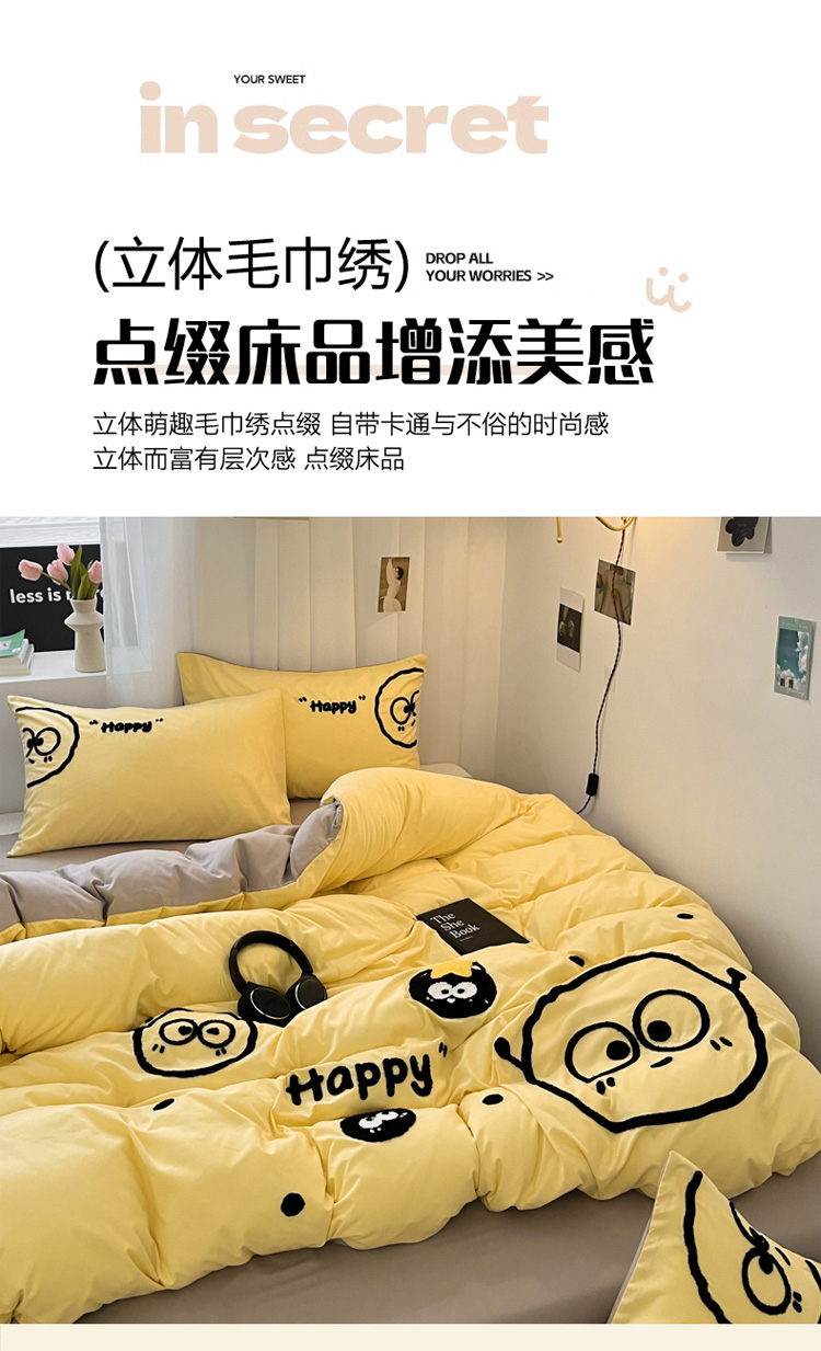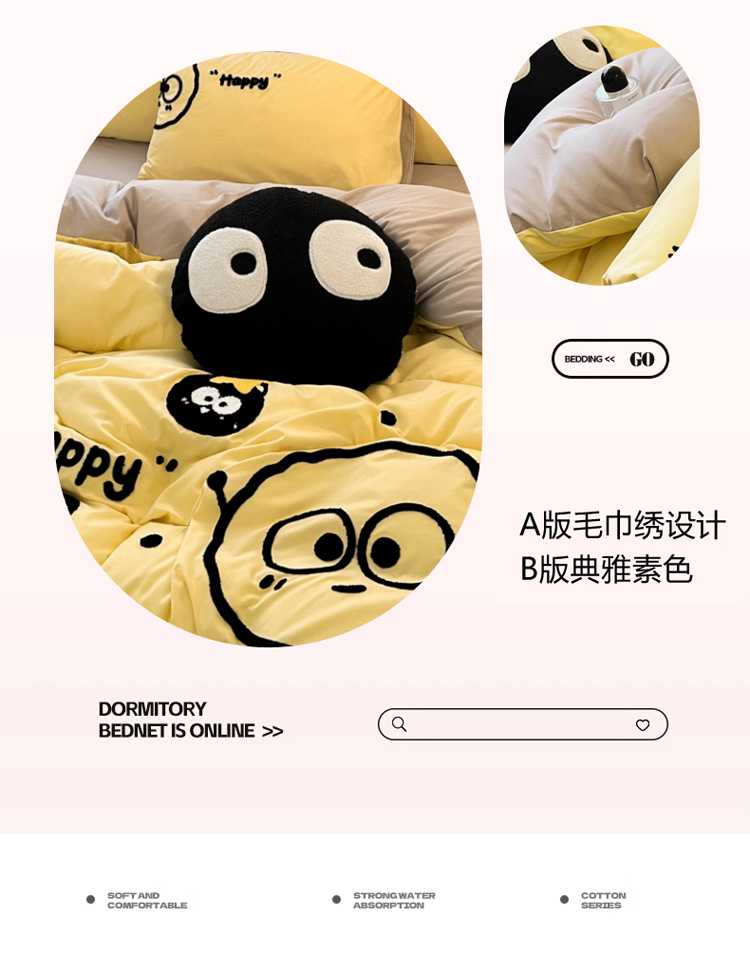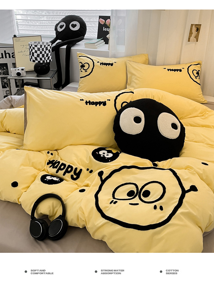 当前位置: 91家纺网 > 商品网购 > 床品套件 > 四件套 > 水洗棉四件套 > 沐慕家居 2024毛巾绣四件套 黑球球-黄色