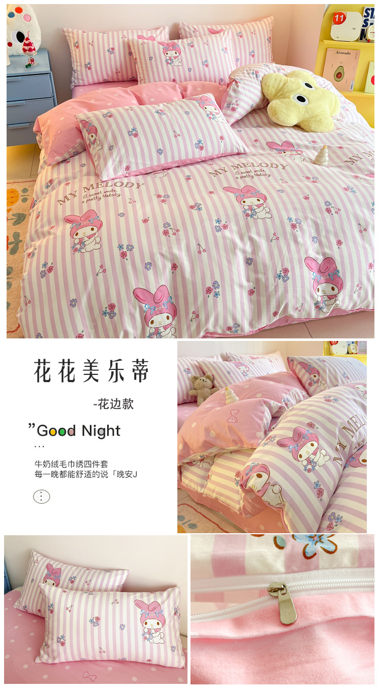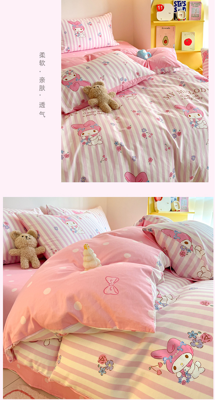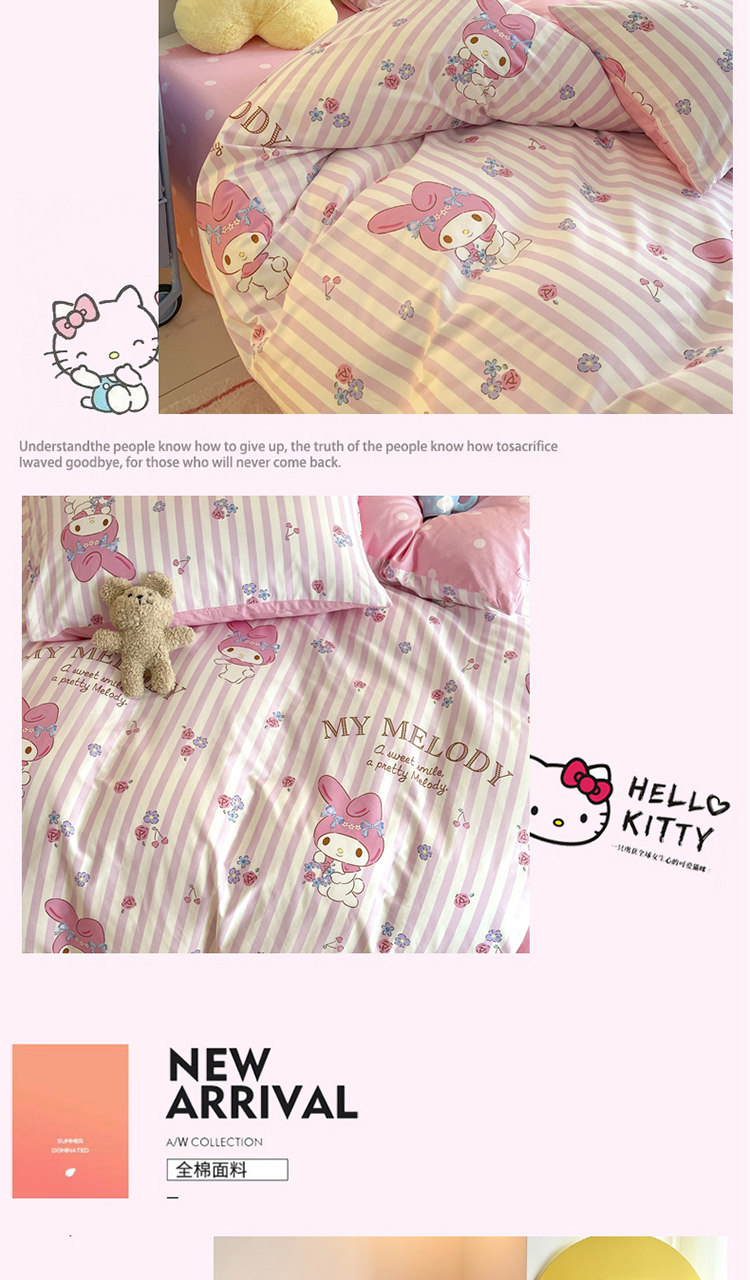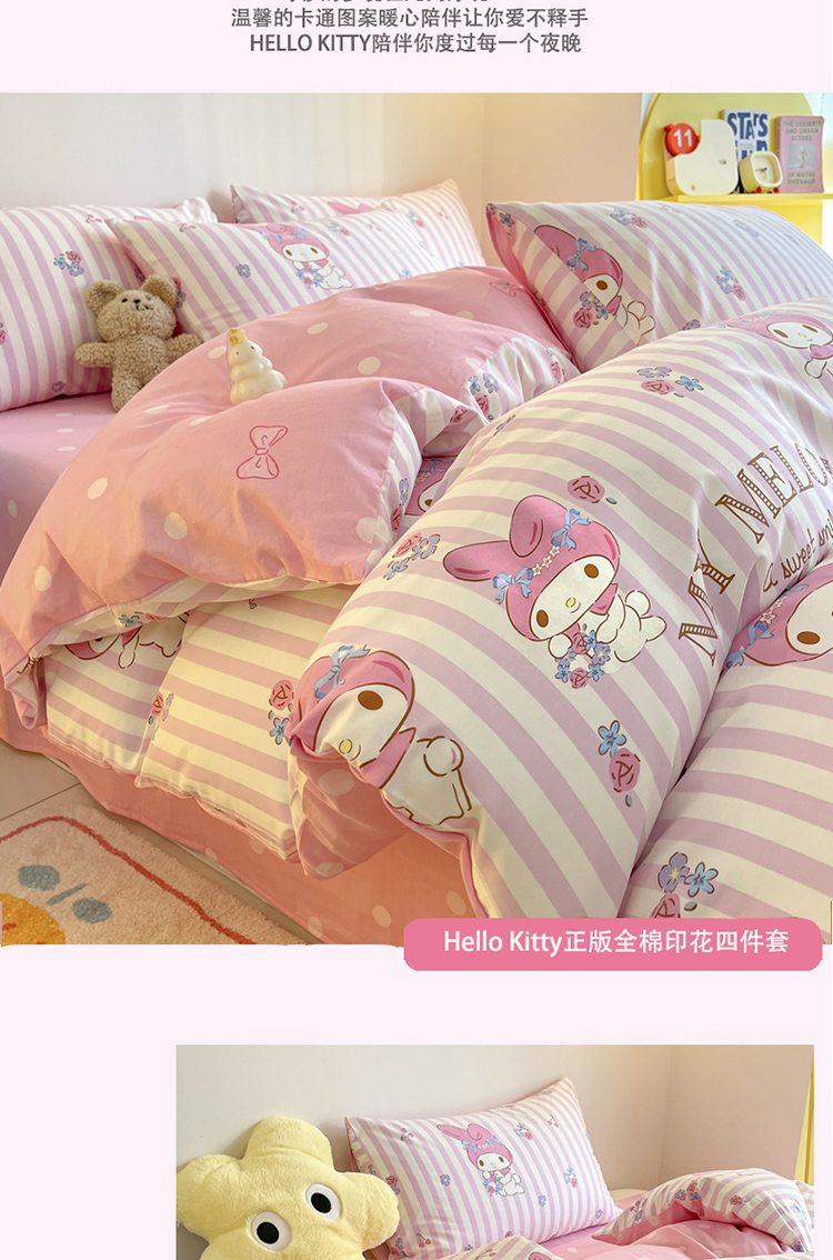 三朵 2024年全棉简单款三丽鸥系列四件套 花花美乐蒂