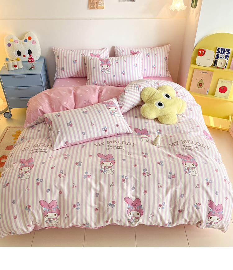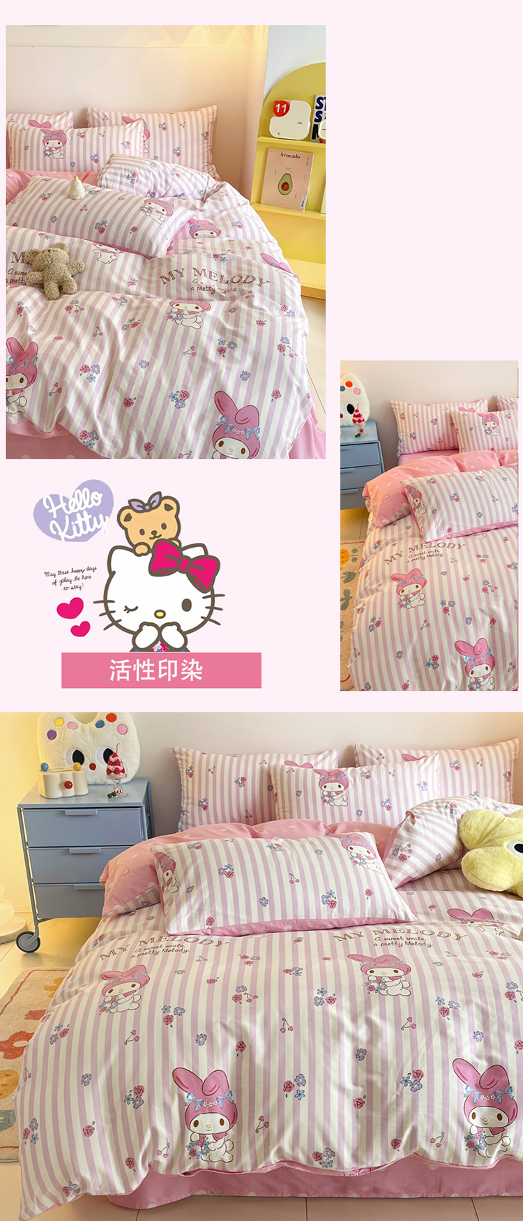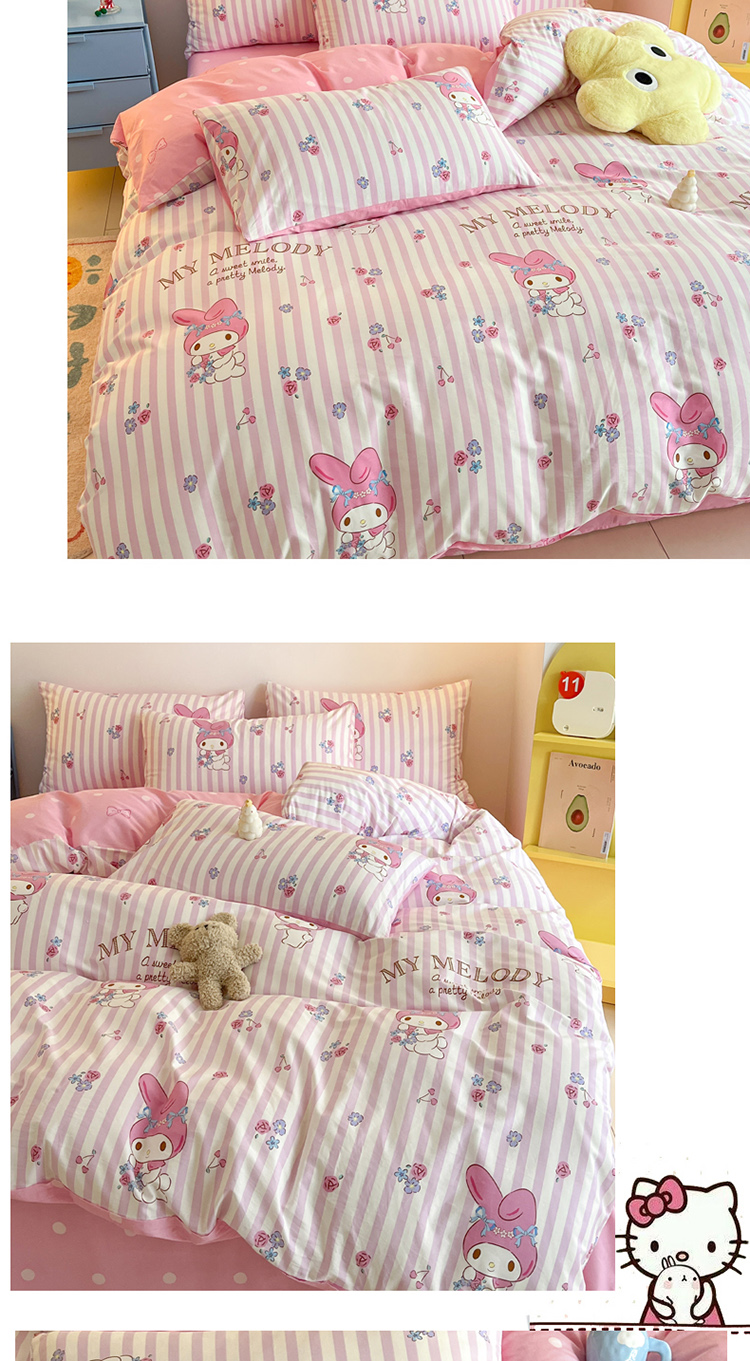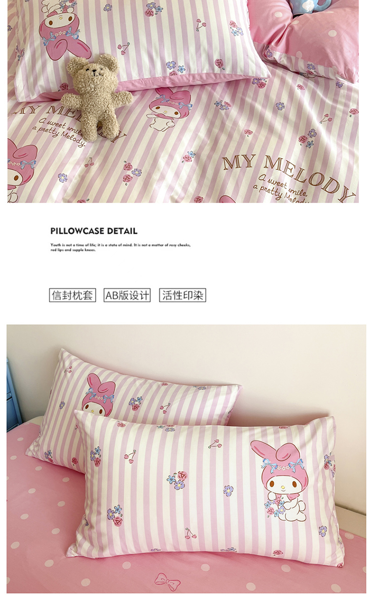 三朵 2024年全棉简单款三丽鸥系列四件套 花花美乐蒂