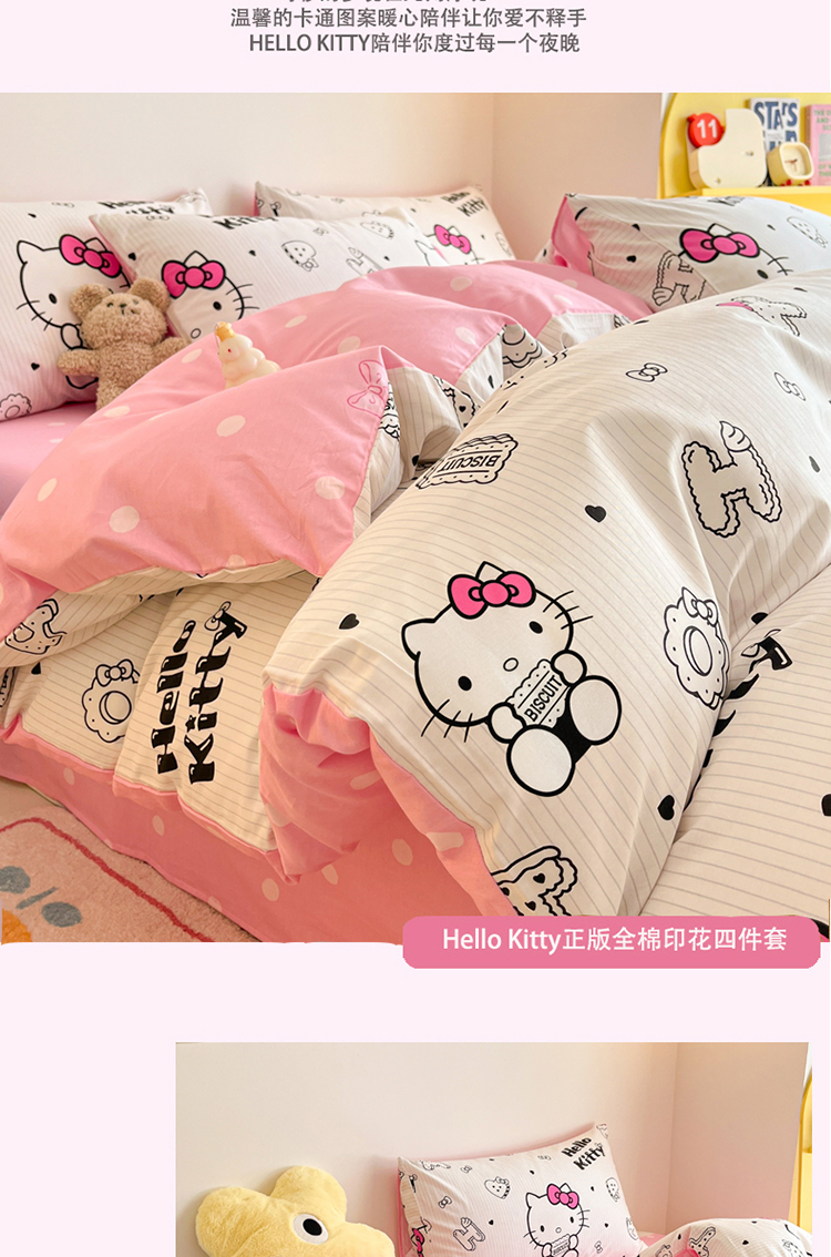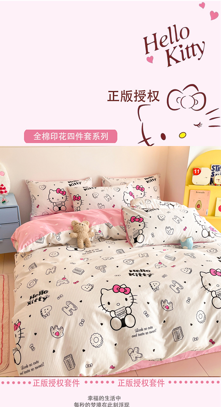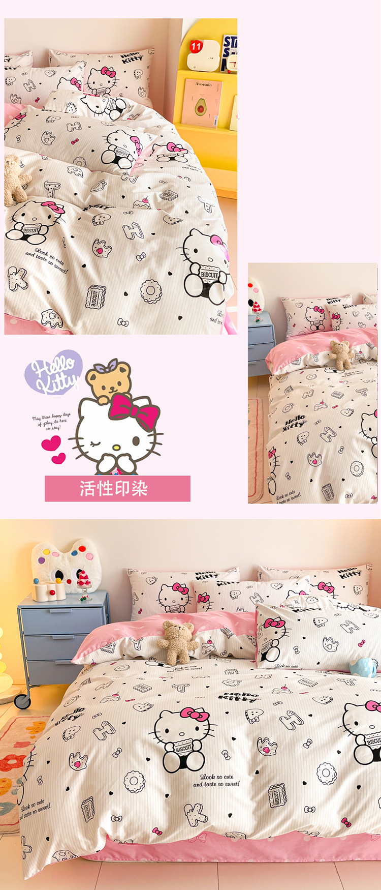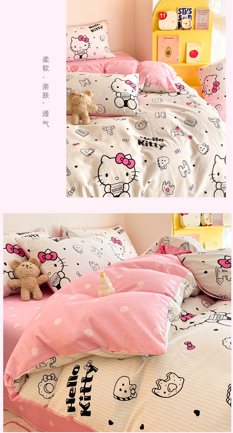 三朵 2024年全棉简单款三丽鸥系列四件套 字母kt