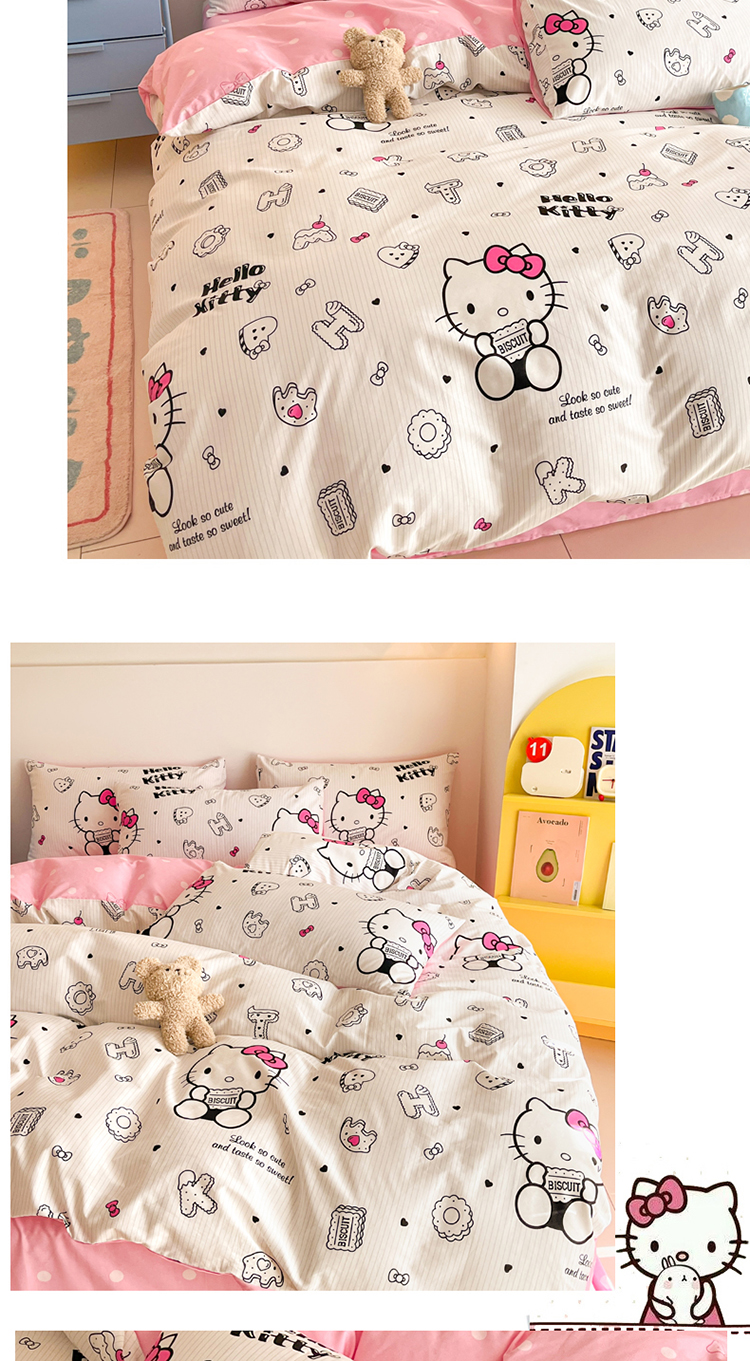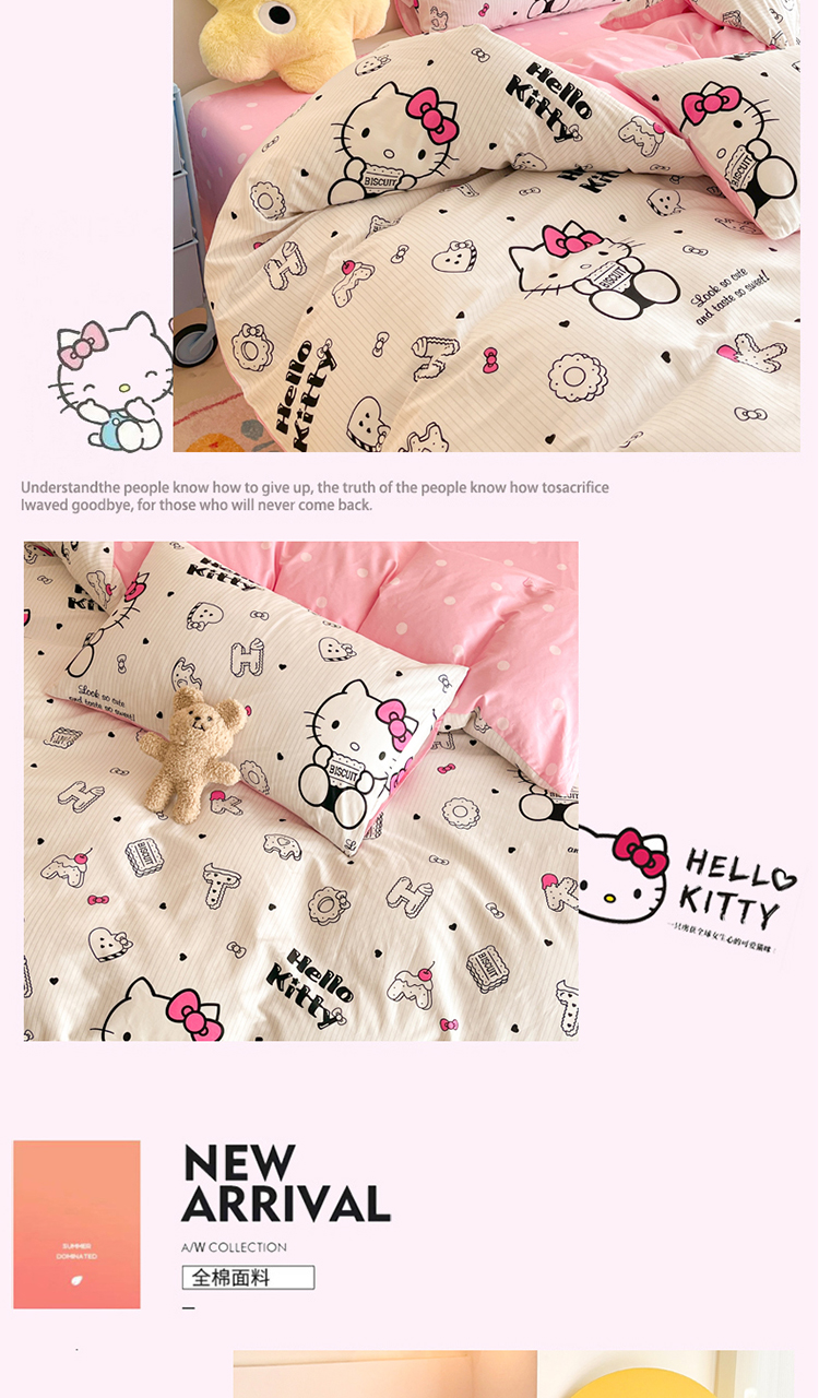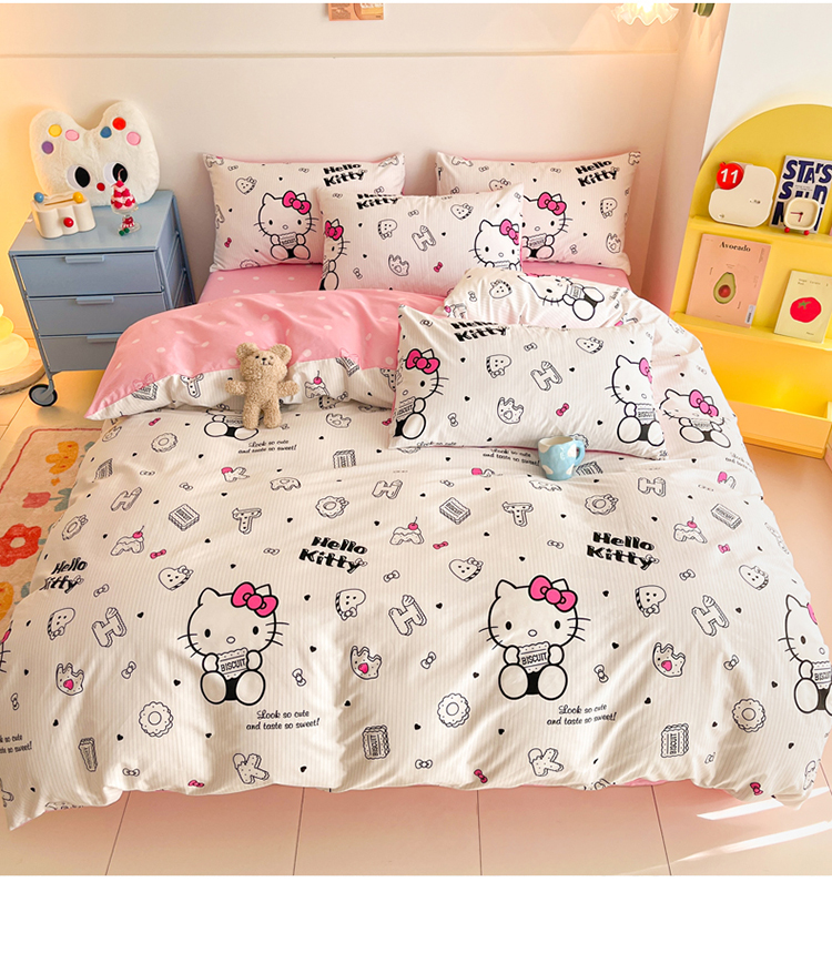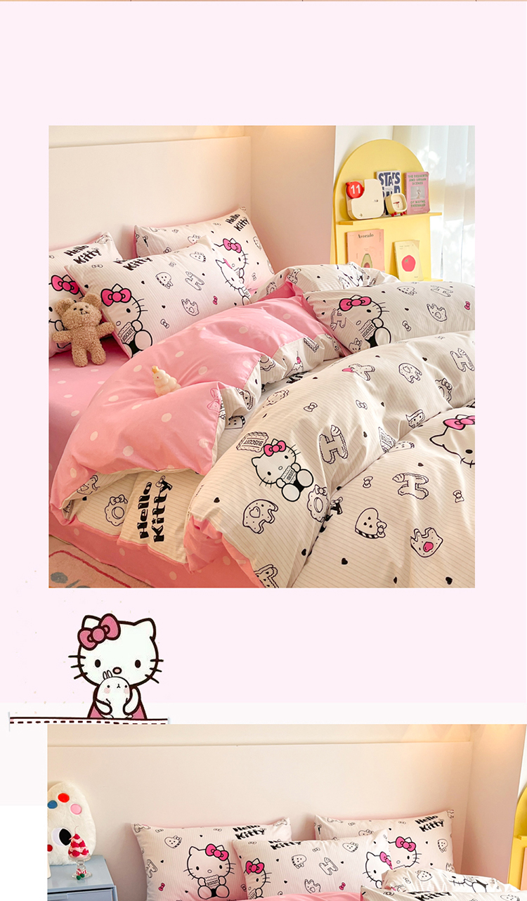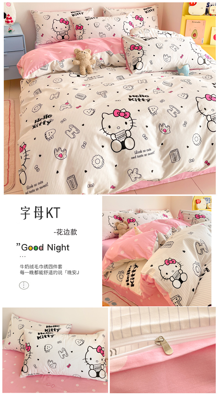 三朵 2024年全棉简单款三丽鸥系列四件套 字母kt