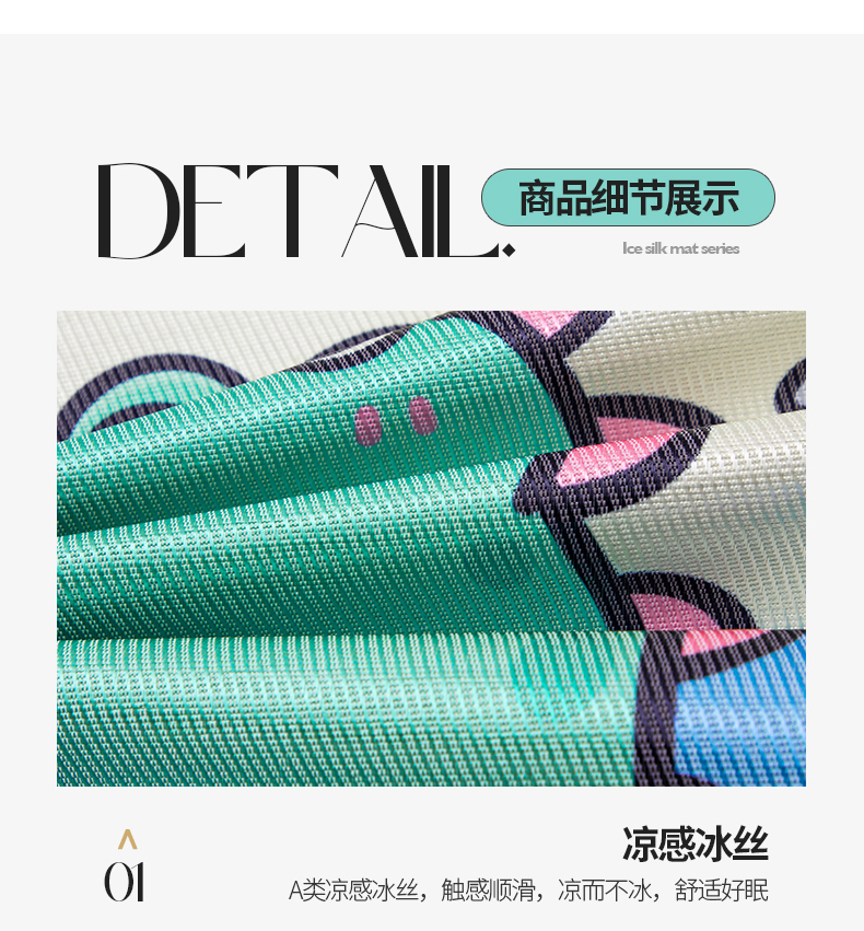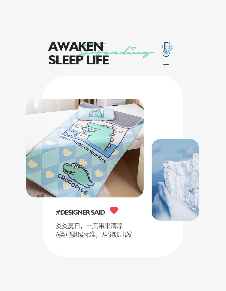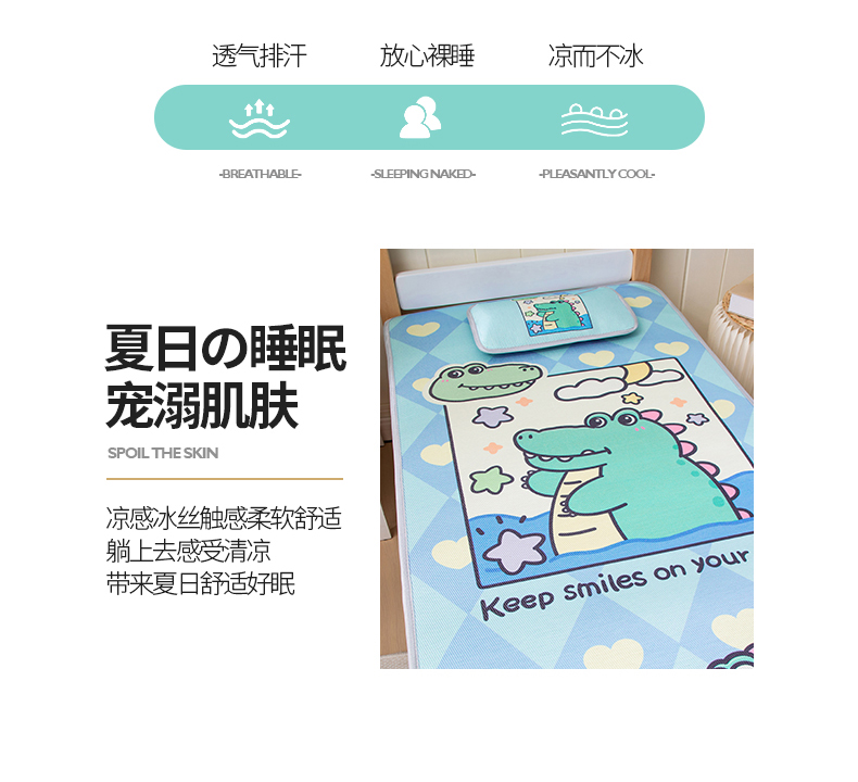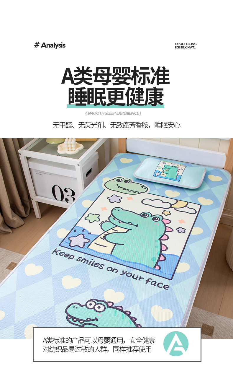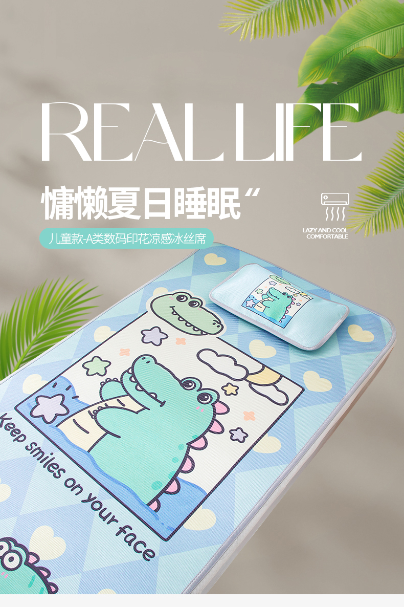 商品名称:欣品希家纺 2024新款A类冰丝印花儿童凉席三件套 小鳄鱼