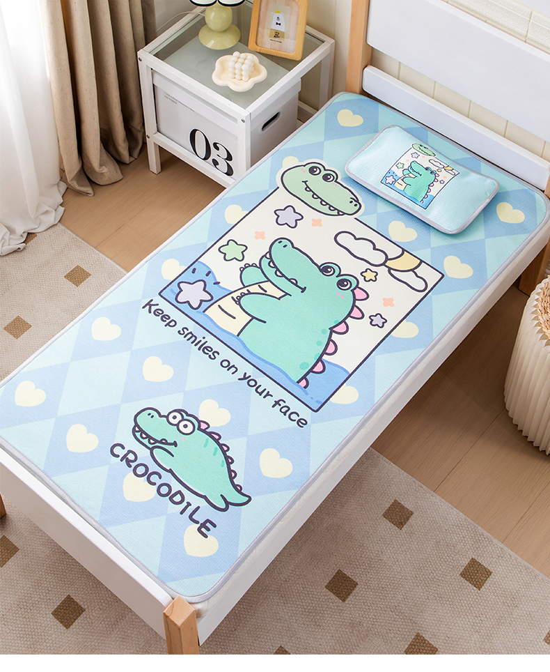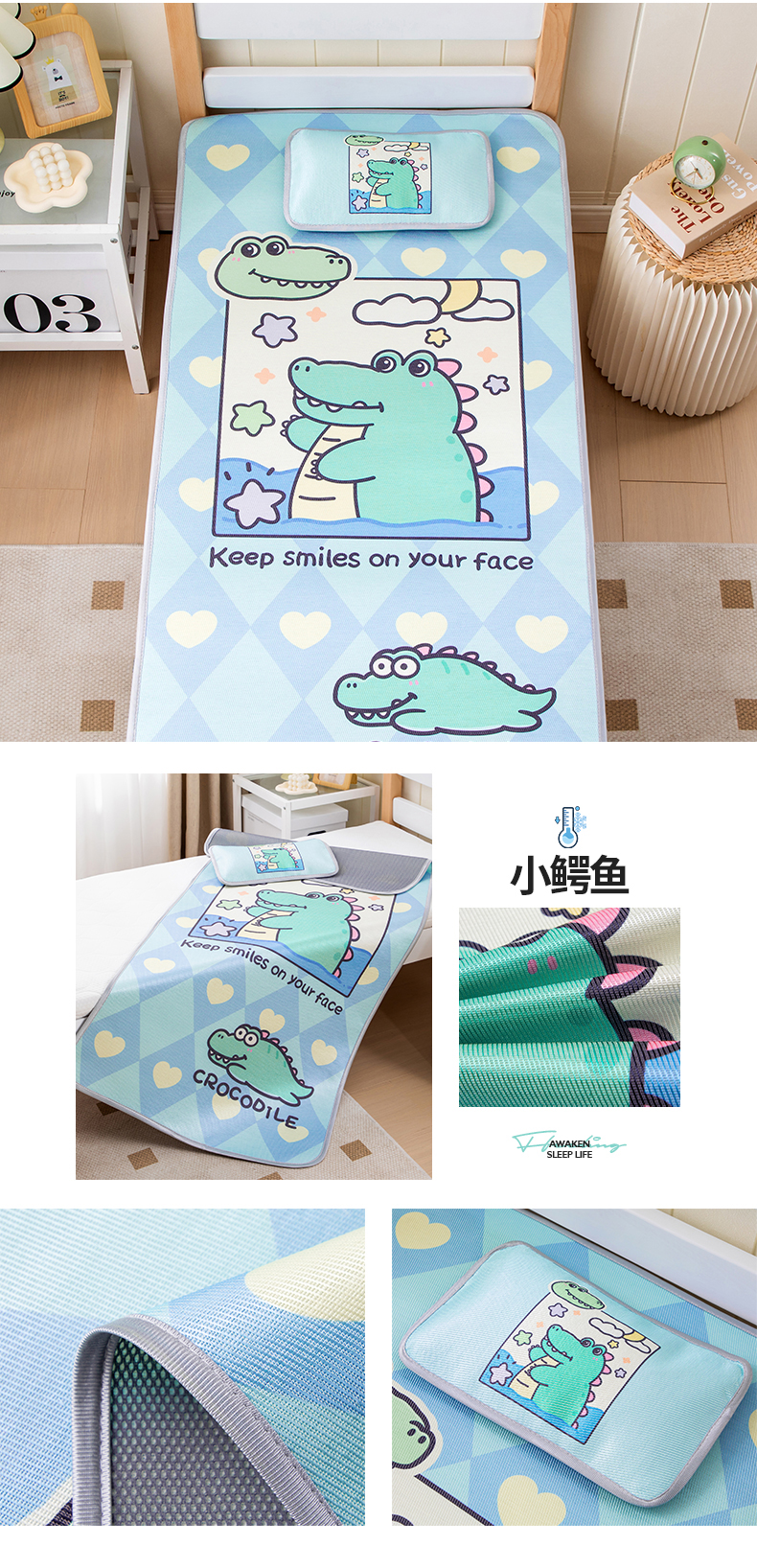 欣品希家纺 2024新款A类冰丝印花儿童凉席三件套 小鳄鱼