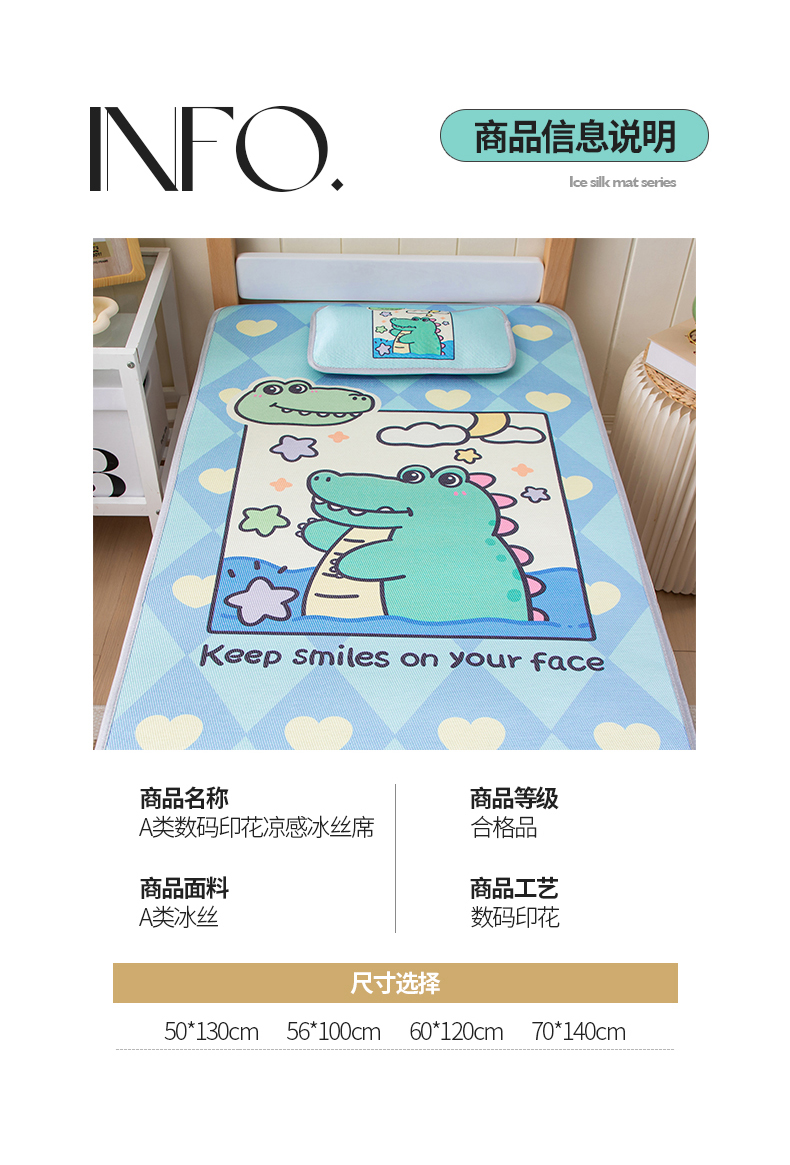 (总)欣品希家纺 2024新款A类冰丝印花儿童凉席三件套,仙人掌,动物园,可爱恐龙,可爱猫,大白熊,宇航员,小鳄鱼,小鸭子,幸运兔,幸运龙,星球恐龙,柿柿顺利,橙子猫咪,欢乐兔子,水果小熊,沙滩鳄鱼,滑雪小马,熊猫,独角兽,睡觉熊,考拉,聪明熊,橙子猫咪,聪明熊,大白熊,独角兽,可爱恐龙,柿柿顺利,水果小熊,小鳄鱼,星球恐龙,幸运兔
