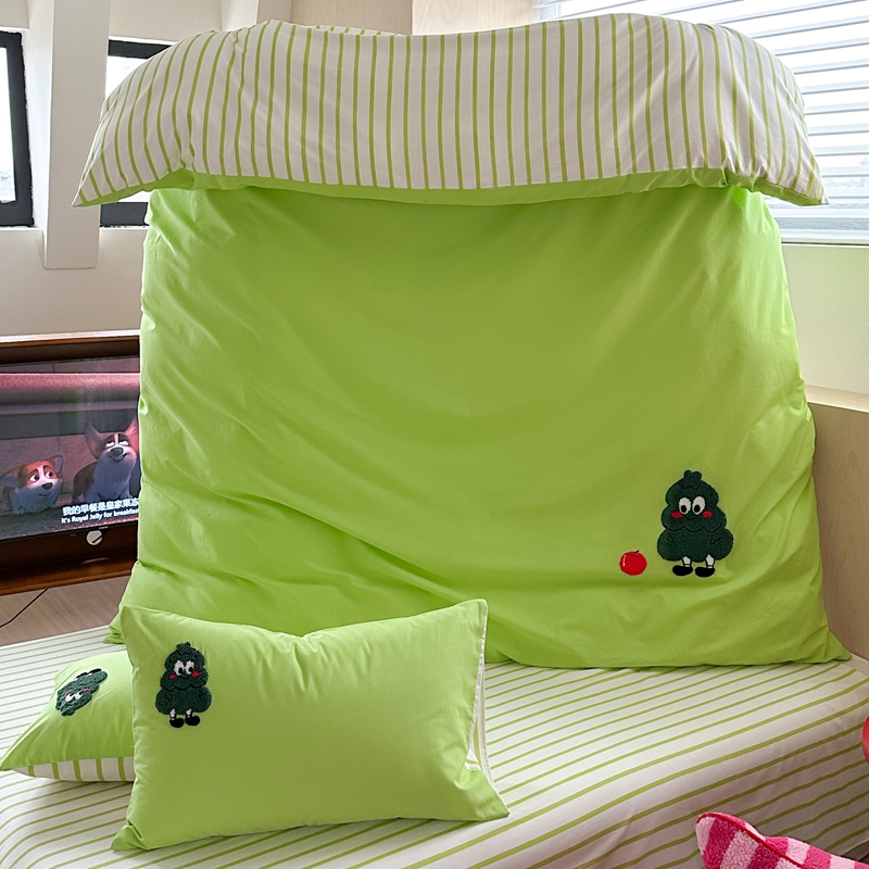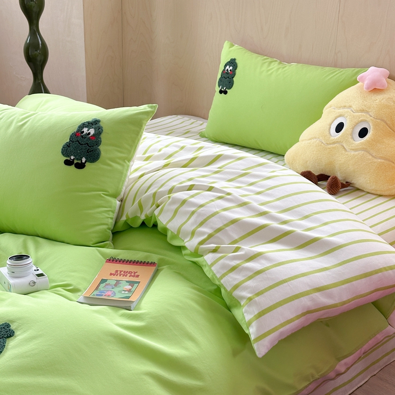 (总)柚子YOUTH 225新款全棉双层纱球球款四件套,薄荷绿条,波点霉霉,波点小丑,蓝心,芊芊结,碎花点点