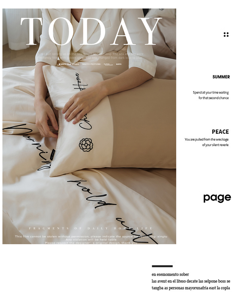 当前位置: 91家纺网 > 商品网购 > 床品套件 > 四件套 > 全棉普通四件套 > 2024春夏新款天丝棉四件套--江南系列(英文版) 江南-甜褐色