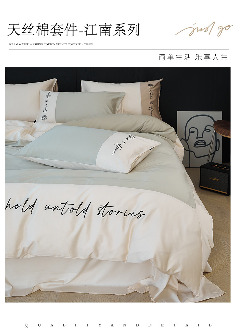 当前位置: 91家纺网 > 商品网购 > 床品套件 > 四件套 > 全棉普通四件套 > 2024春夏新款天丝棉四件套--江南系列(常规图) 江南-青玉