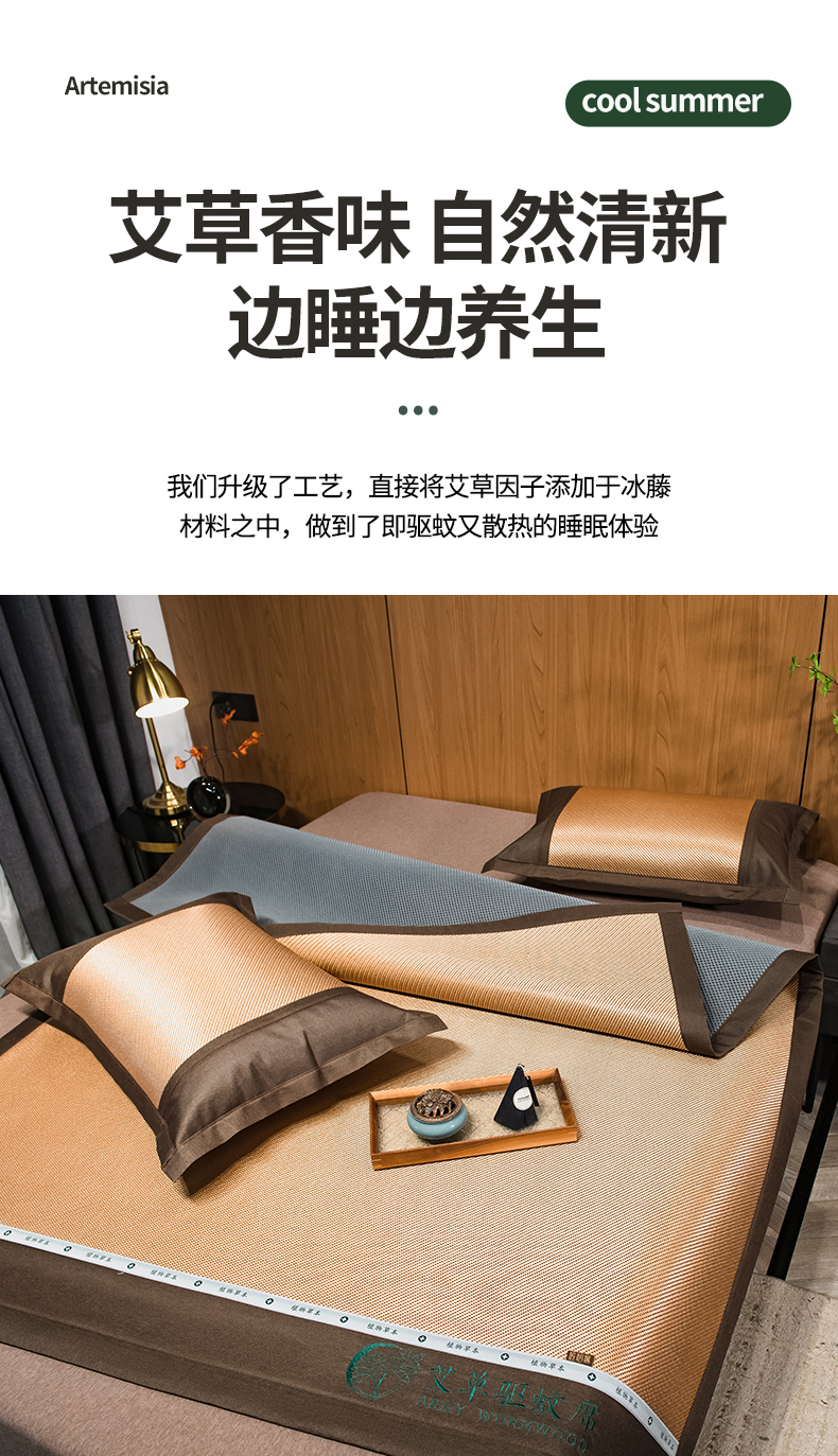 商品名称:全季家居 2024新款A类艾草驱蚊冰藤席 艾草-金色