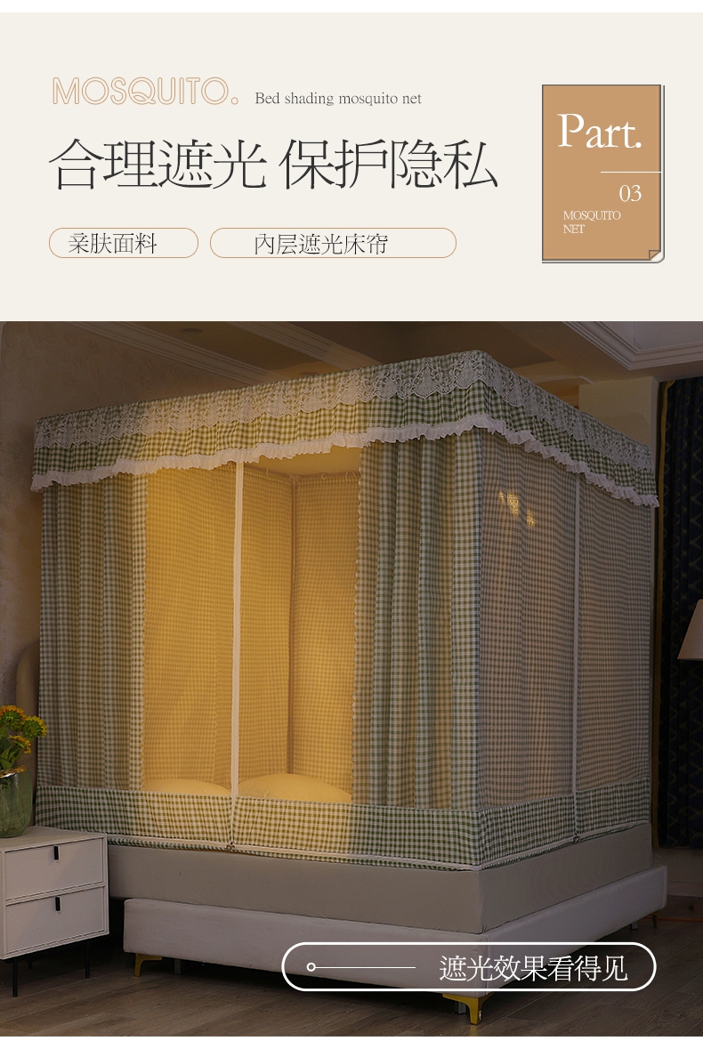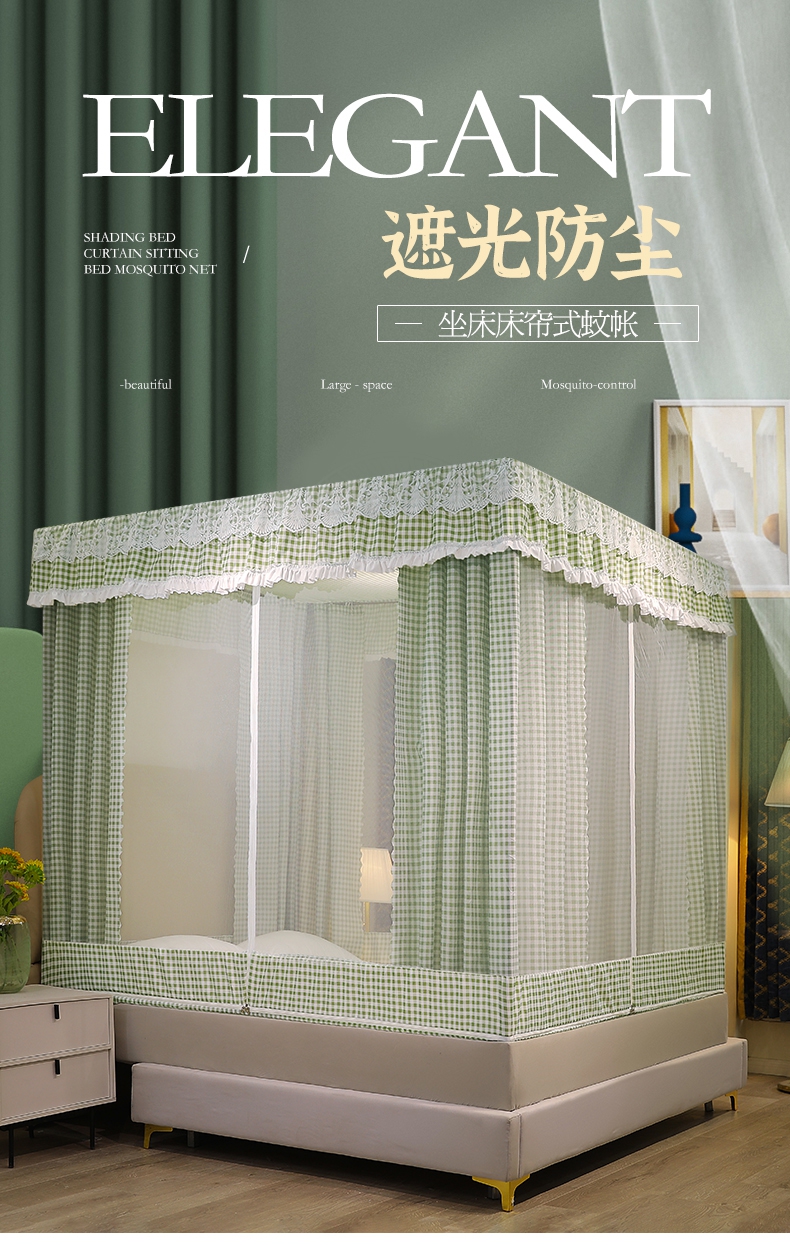 初心2025新款坐床遮光蚊帐系列 绿小格