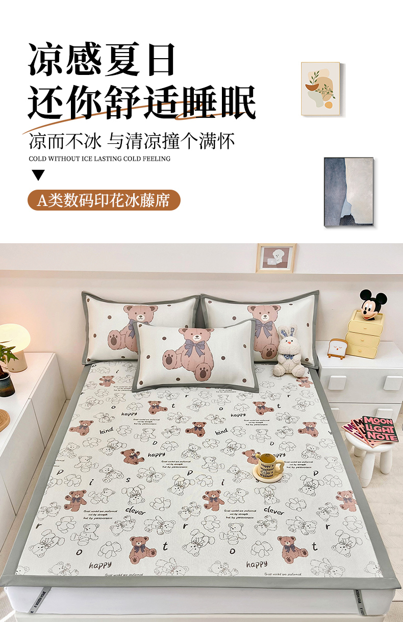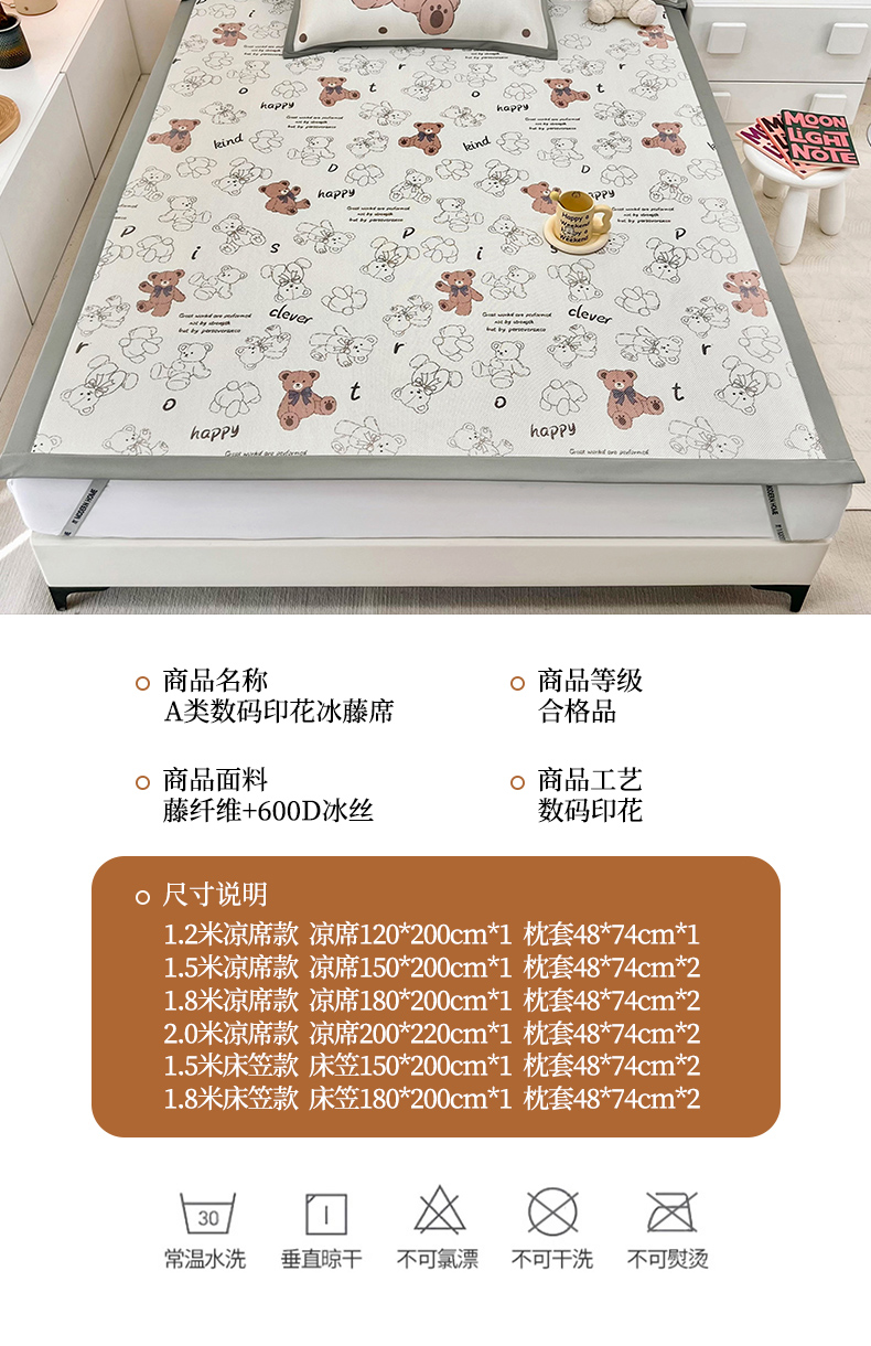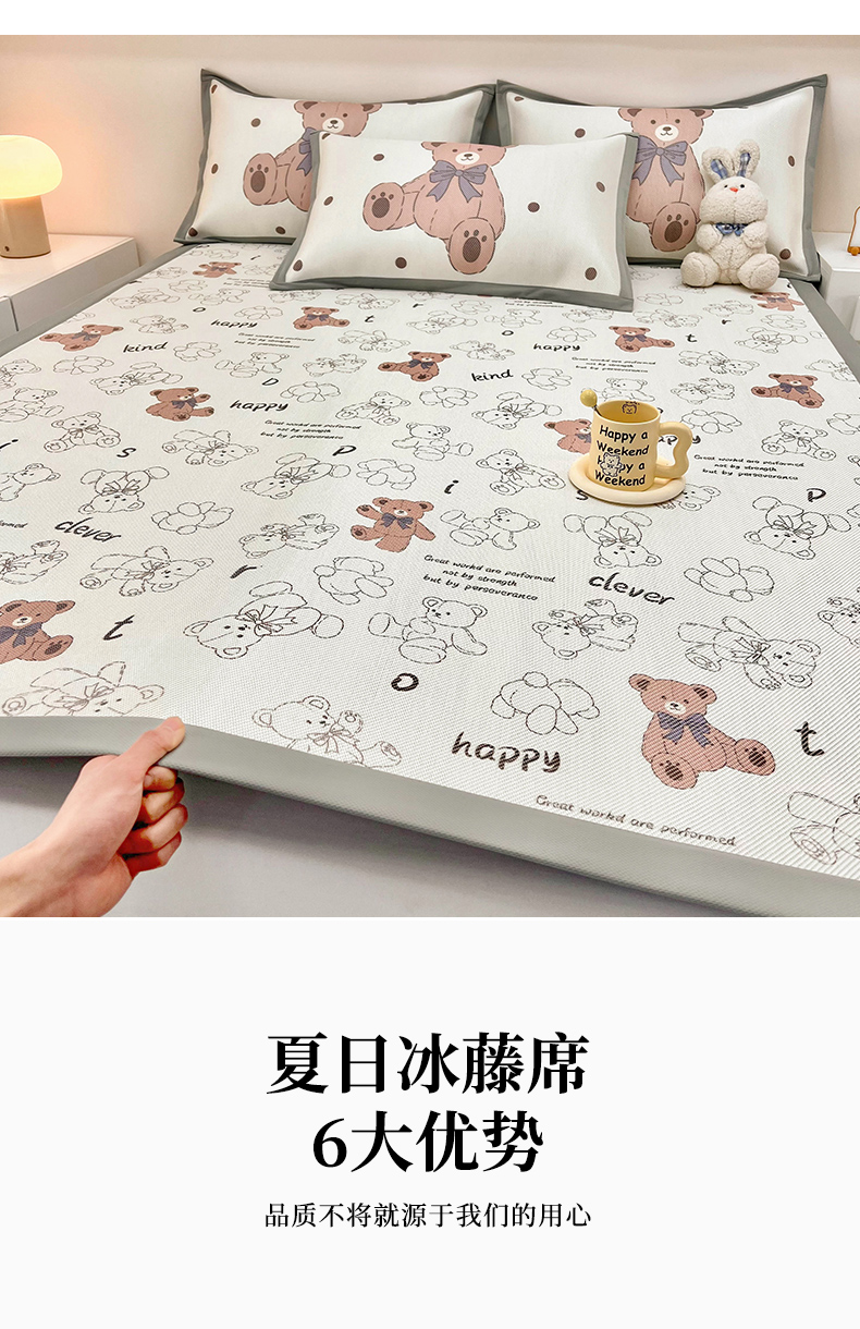 当前位置: 91家纺网 > 商品网购 > 床上用品 > 凉席 > 藤席 > 全季家居 2024新款5A抗菌小清新数码印花冰藤席 快乐小熊(床席款)