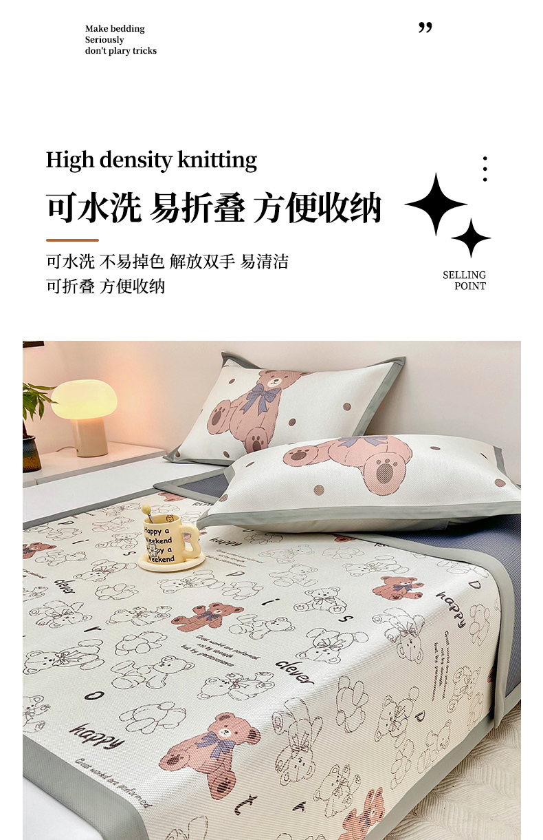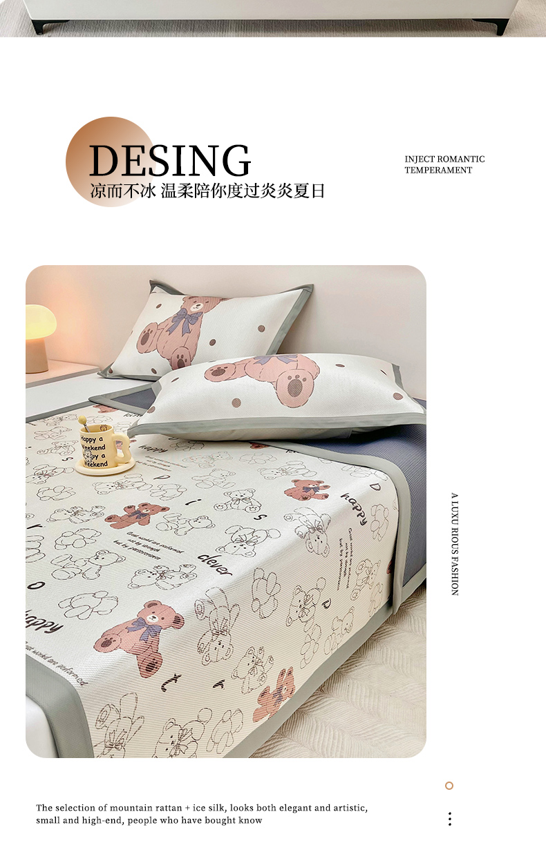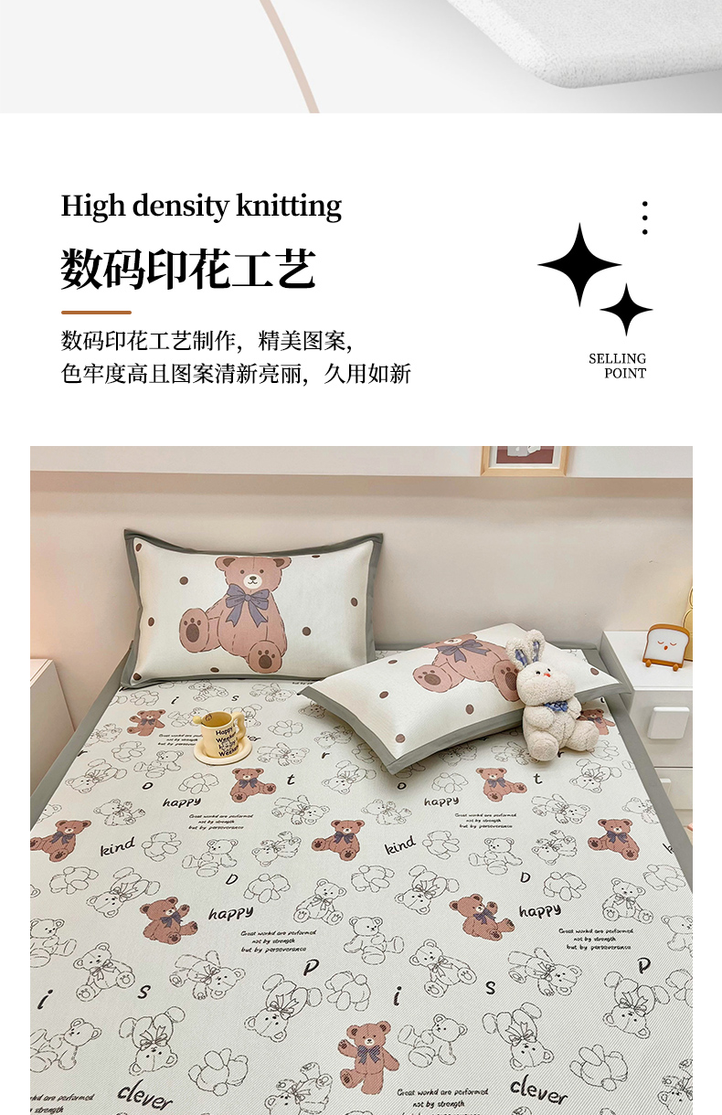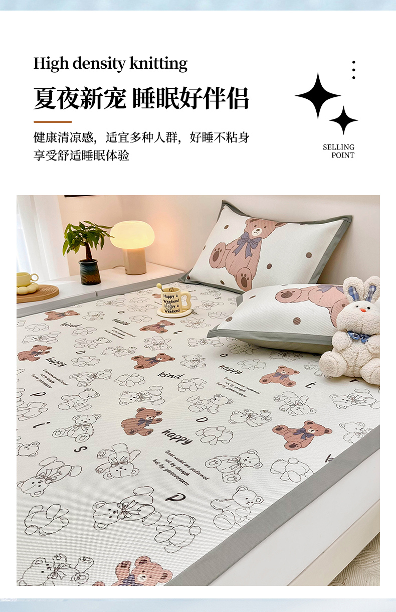 当前位置: 91家纺网 > 商品网购 > 床上用品 > 凉席 > 藤席 > 全季家居 2024新款5A抗菌小清新数码印花冰藤席 快乐小熊(床席款)