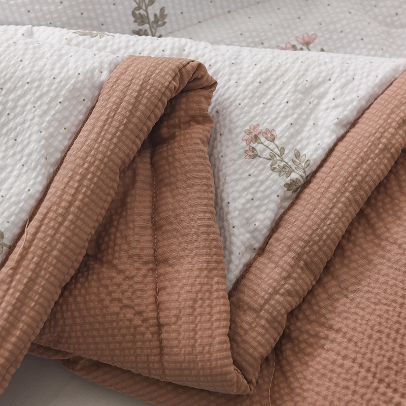 伊婷人家纺 2024新款泡泡棉印花透气爽肤被 情意绵绵玉色