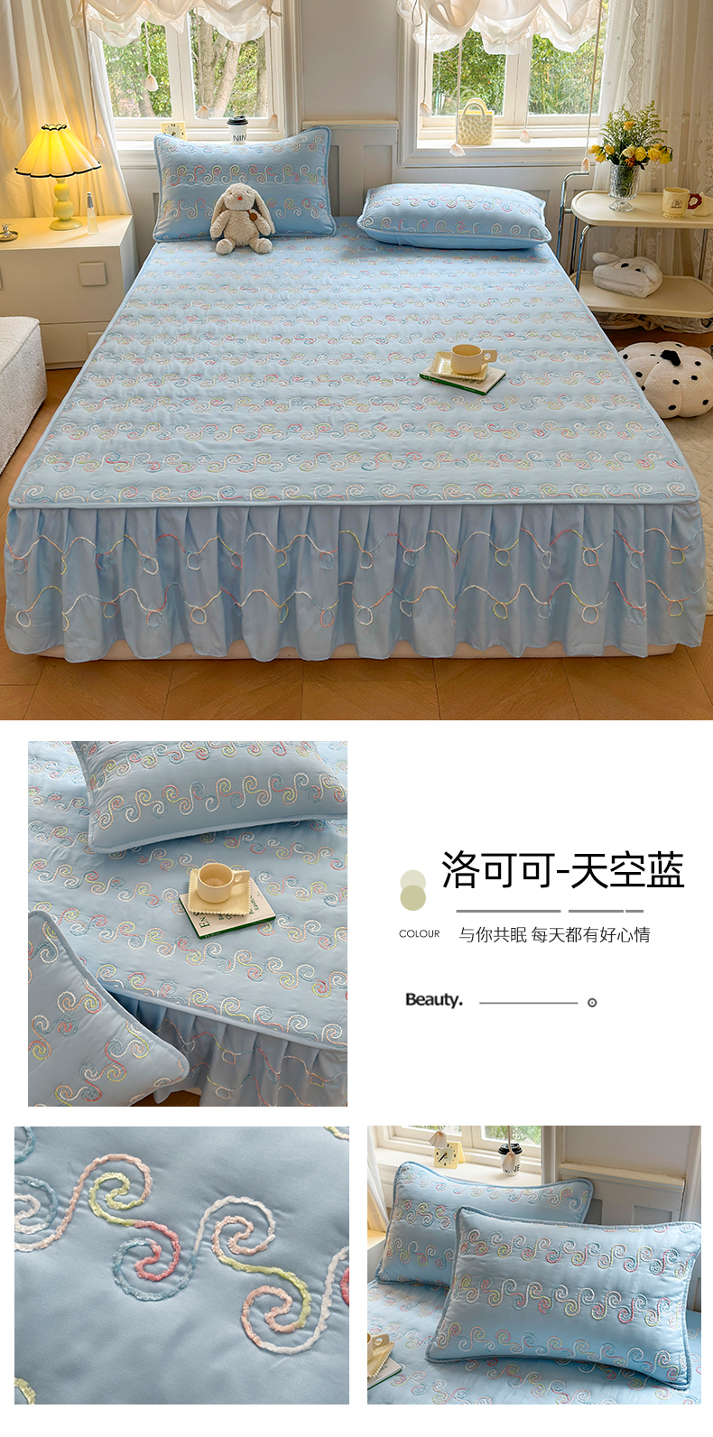尊康家纺(原磊科) 2024新款亲肤奶昔棉夹棉床裙-洛可可 洛可可-天空蓝