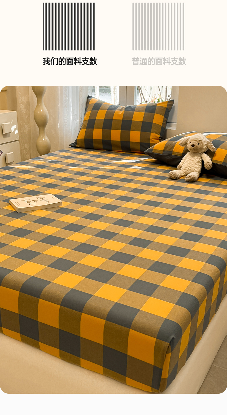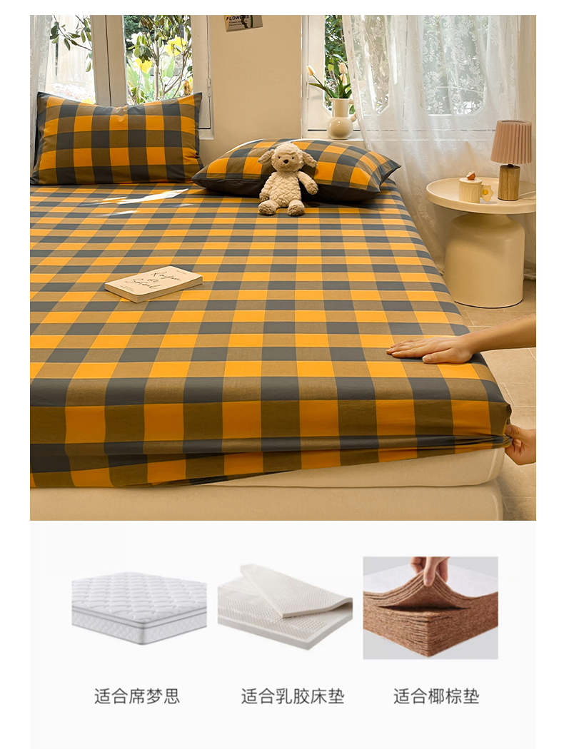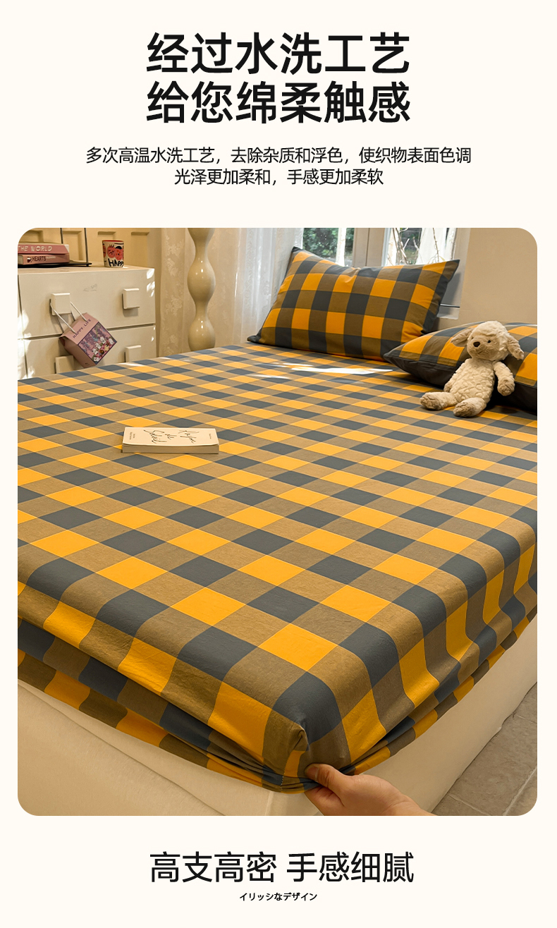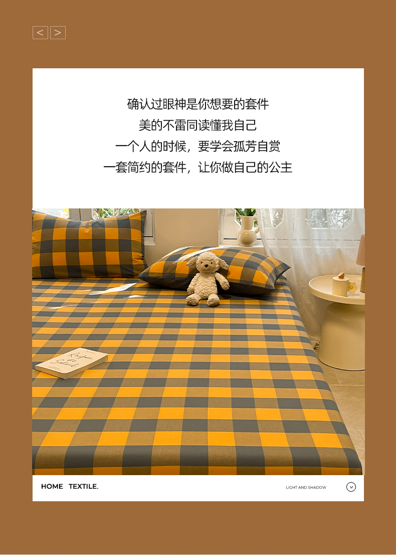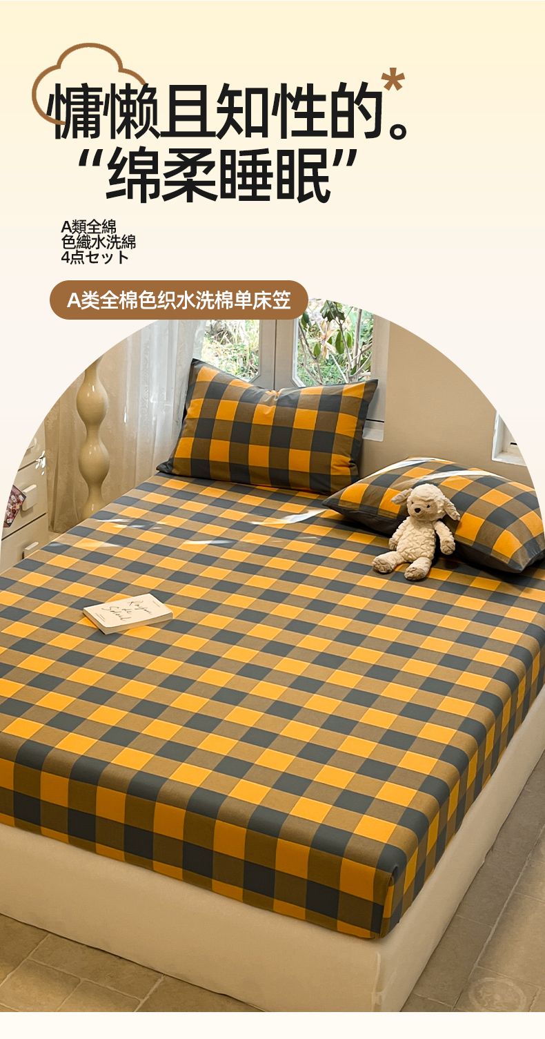 商品名称:蓝邻 2024新款全棉无印风全棉色织水洗棉单品床笠 格森橘中格