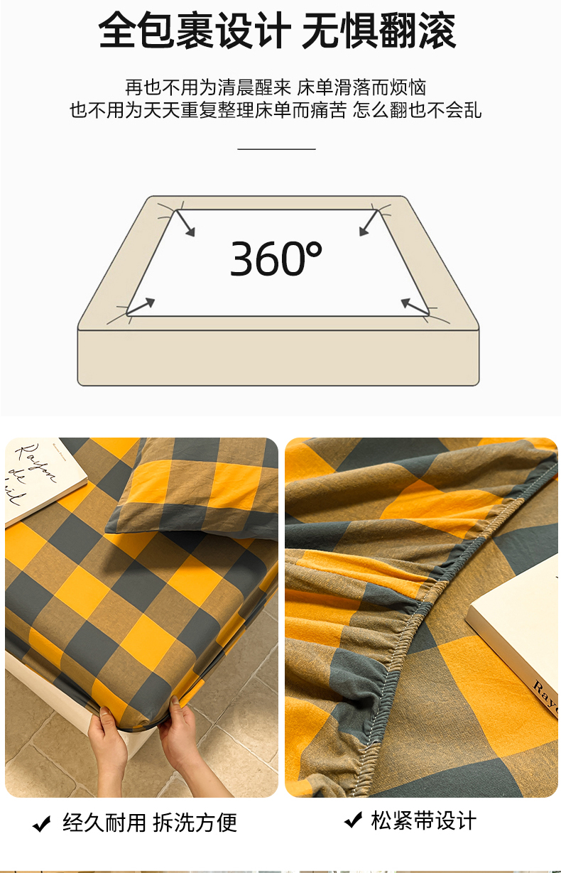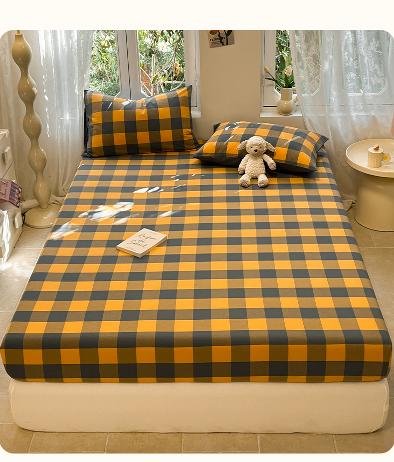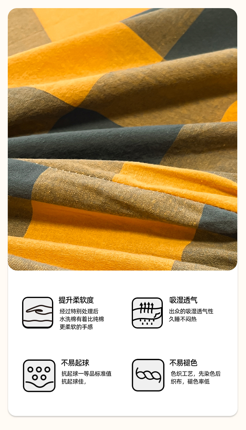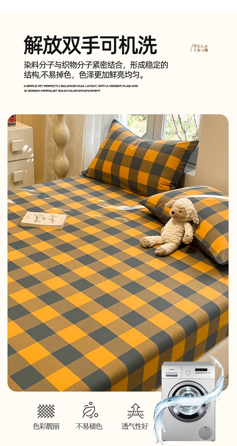 商品名称:蓝邻 2024新款全棉无印风全棉色织水洗棉单品床笠 格森橘中格