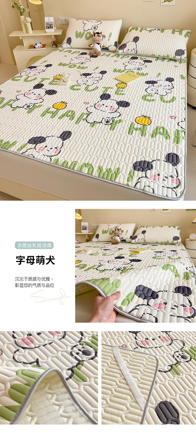 商品名称:世纪绒品 2026新款凉感丝印花款乳胶凉席 字母萌犬