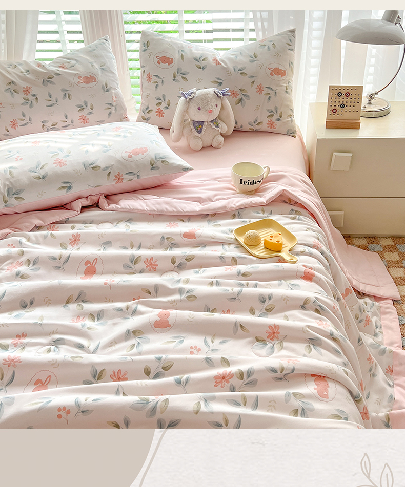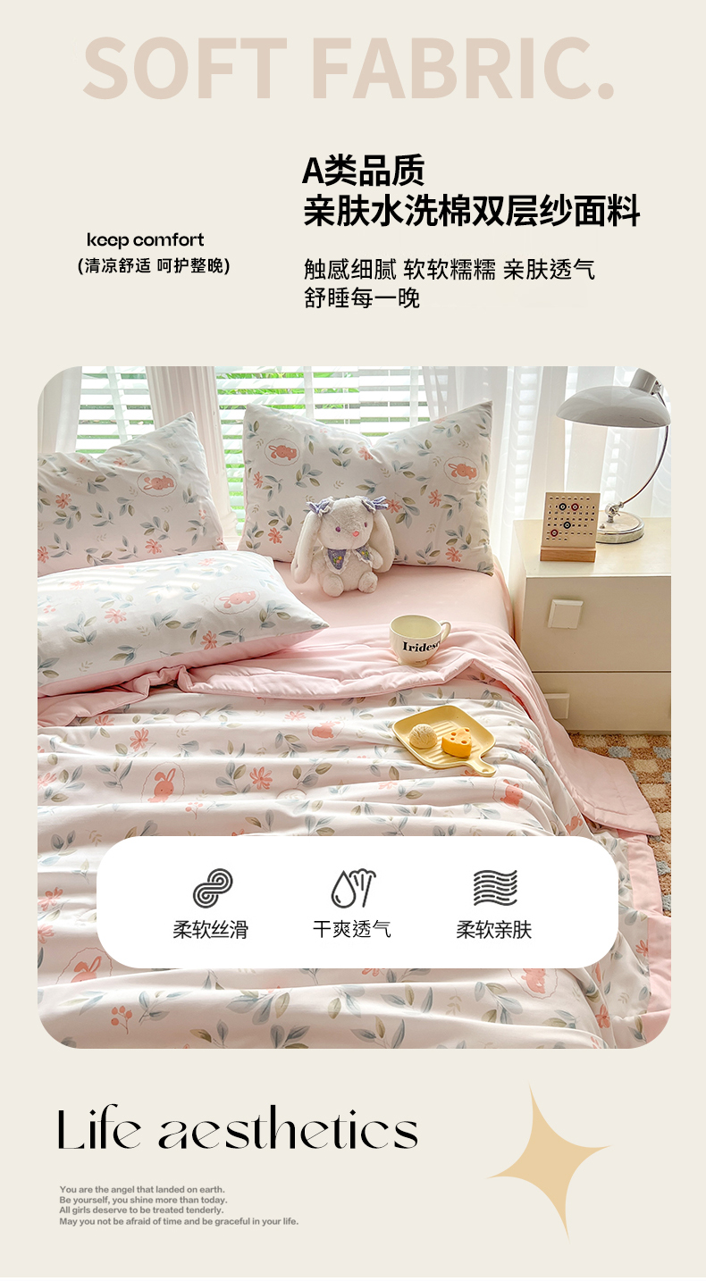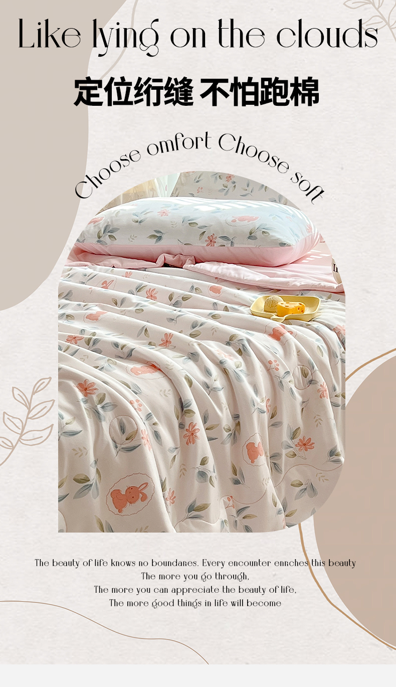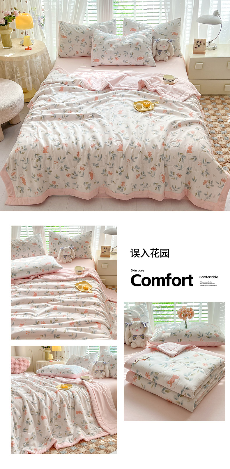 • 91家纺网 家纺一手货源 找家纺 妖妖家纺 2024新款超柔软糯水洗云朵棉印花夏被四件套 误入花园