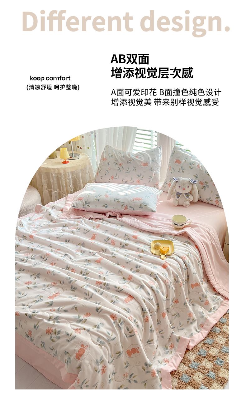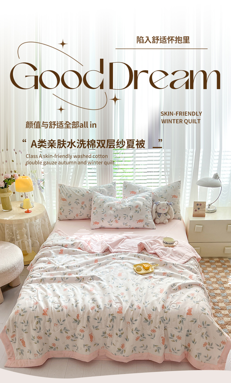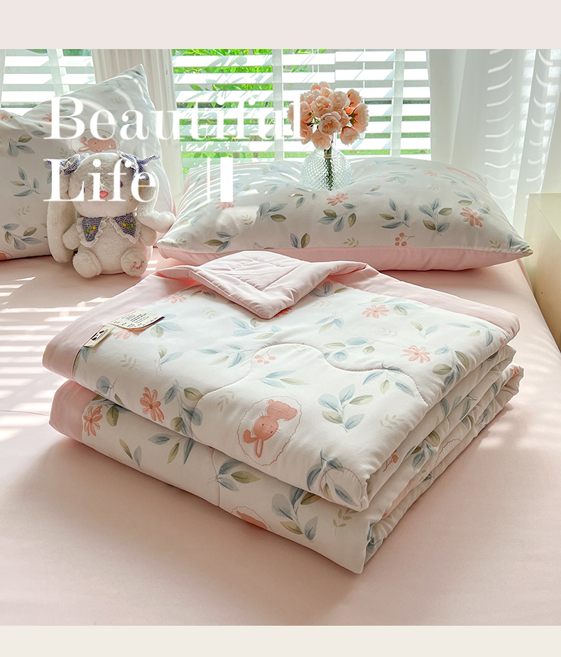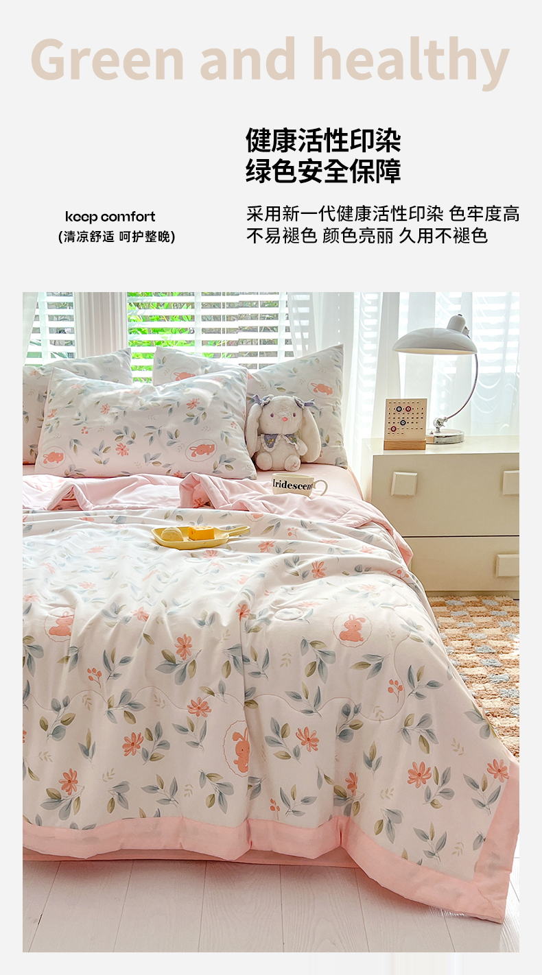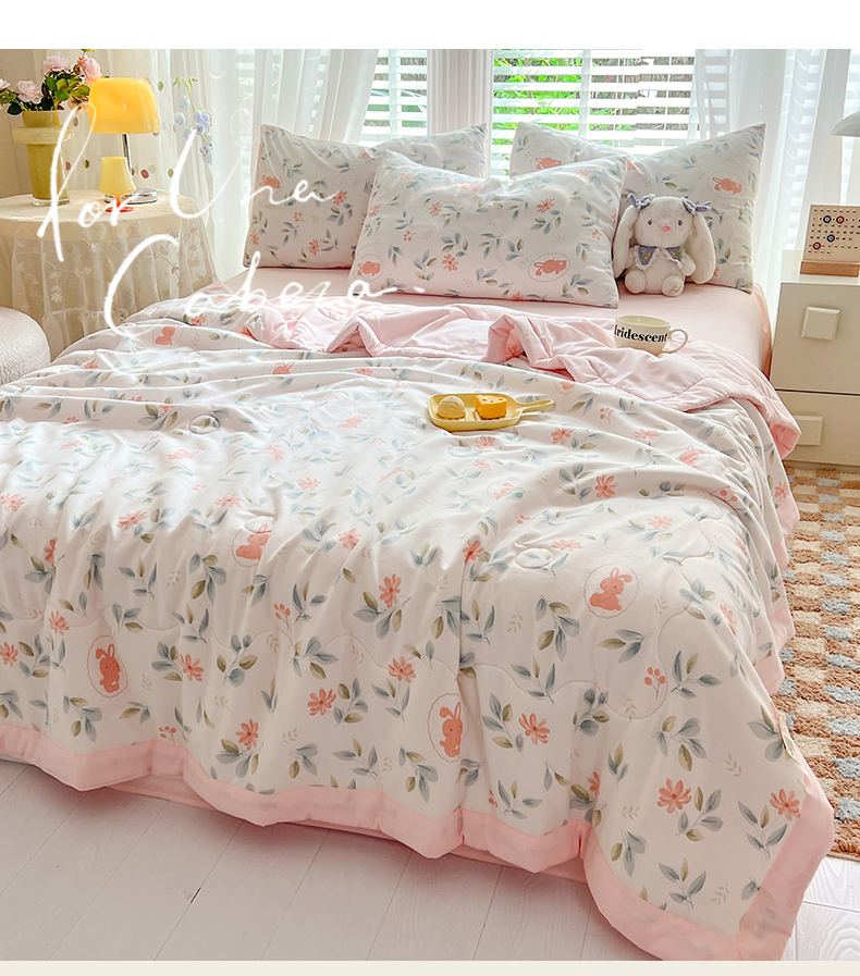• 91家纺网 家纺一手货源 找家纺 妖妖家纺 2024新款超柔软糯水洗云朵棉印花夏被四件套 误入花园