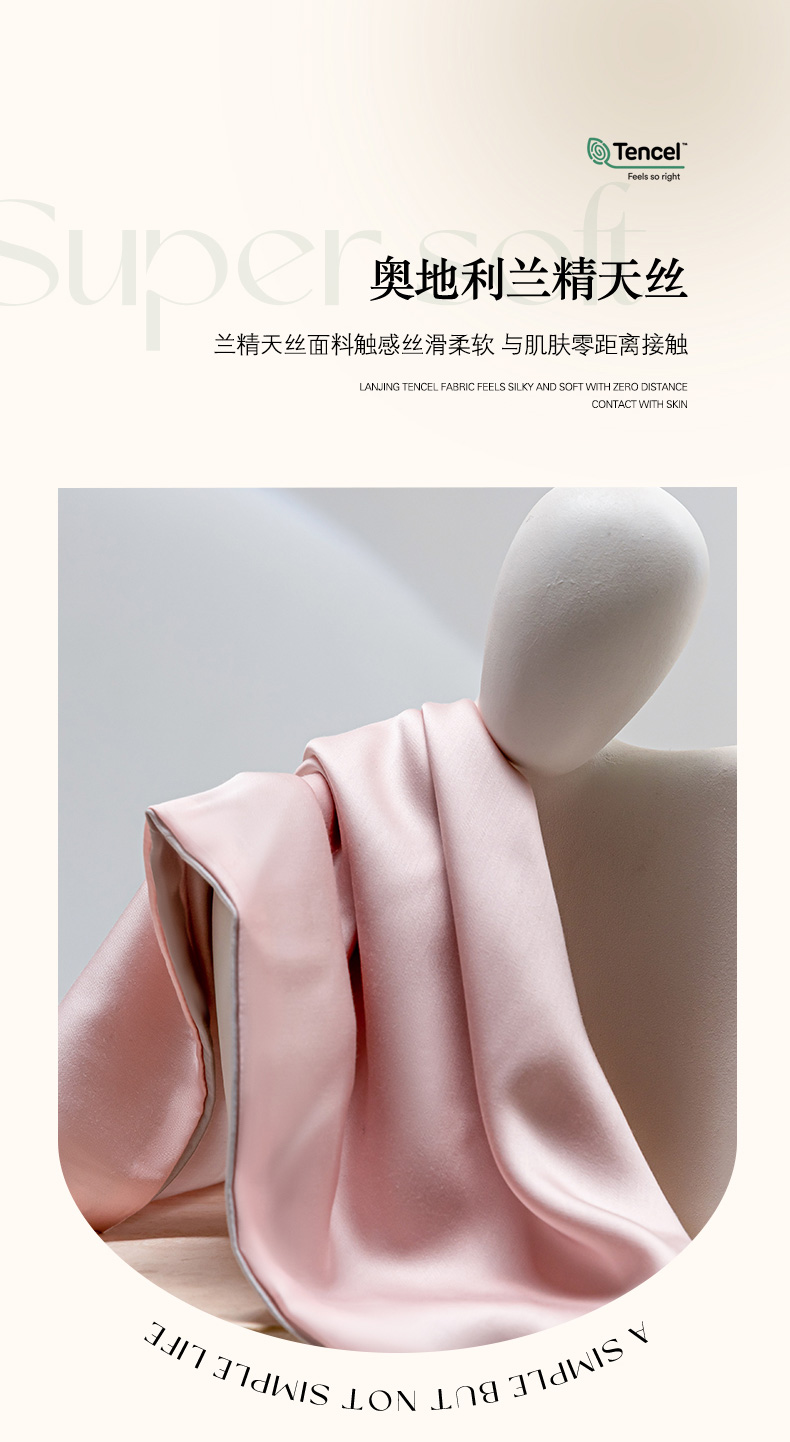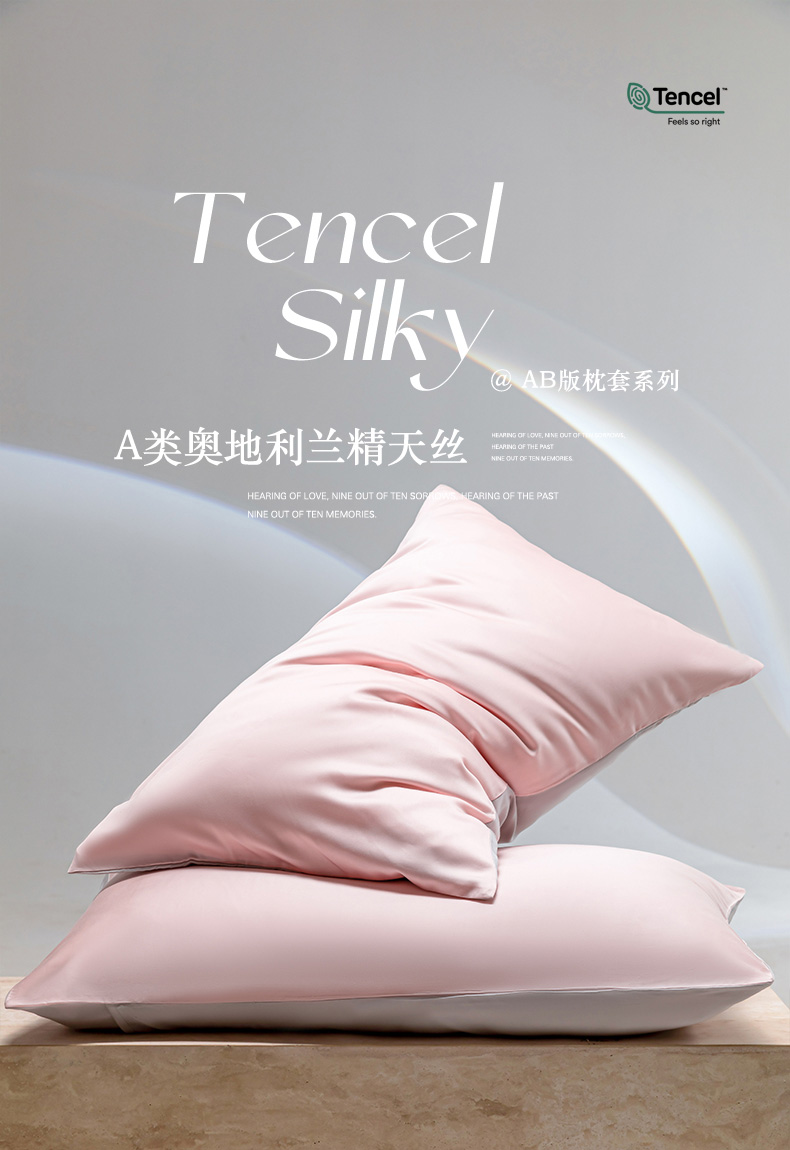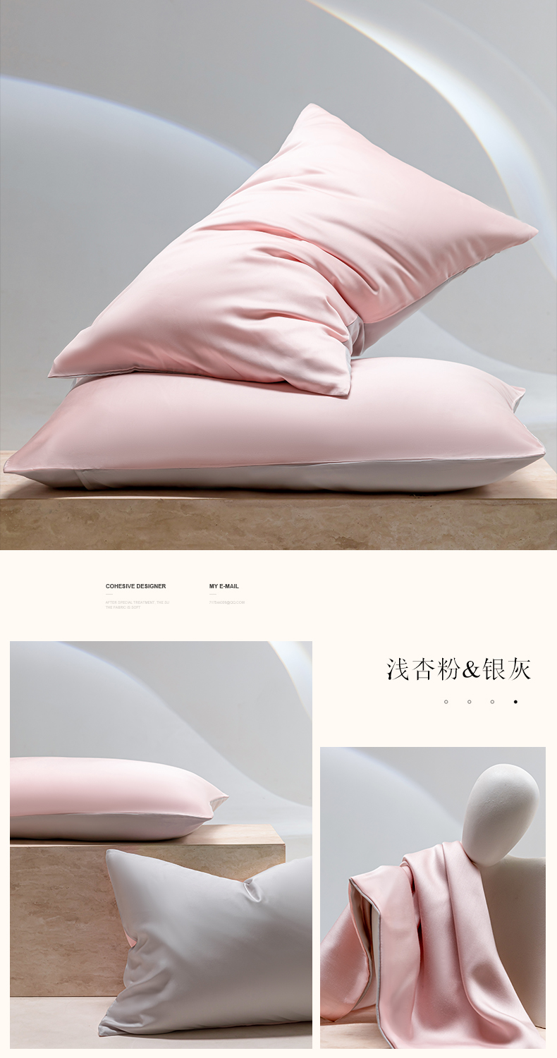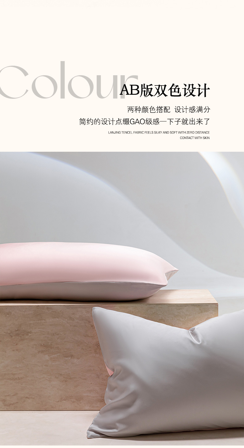 商品名称:云栖家居 202460支A类兰精天丝系列单品枕套(风格一) 浅杏粉+银灰