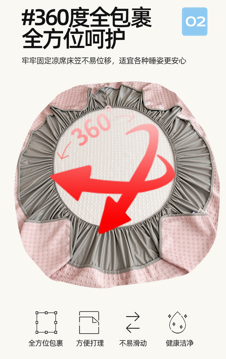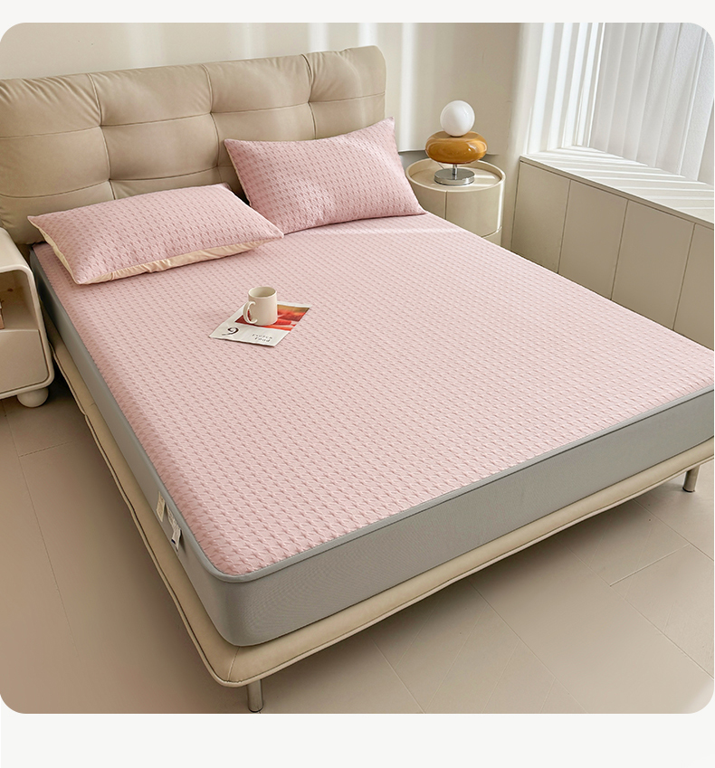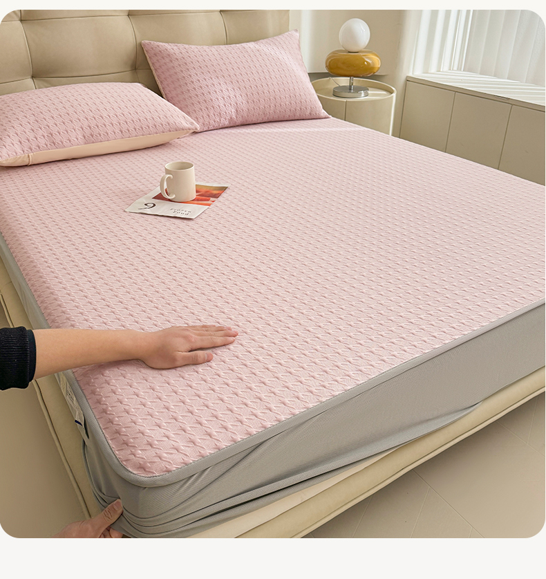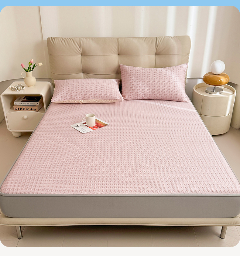 恒爱家纺 新款A类亲肤几何鸟冰丝床笠 千鸟格-豆沙