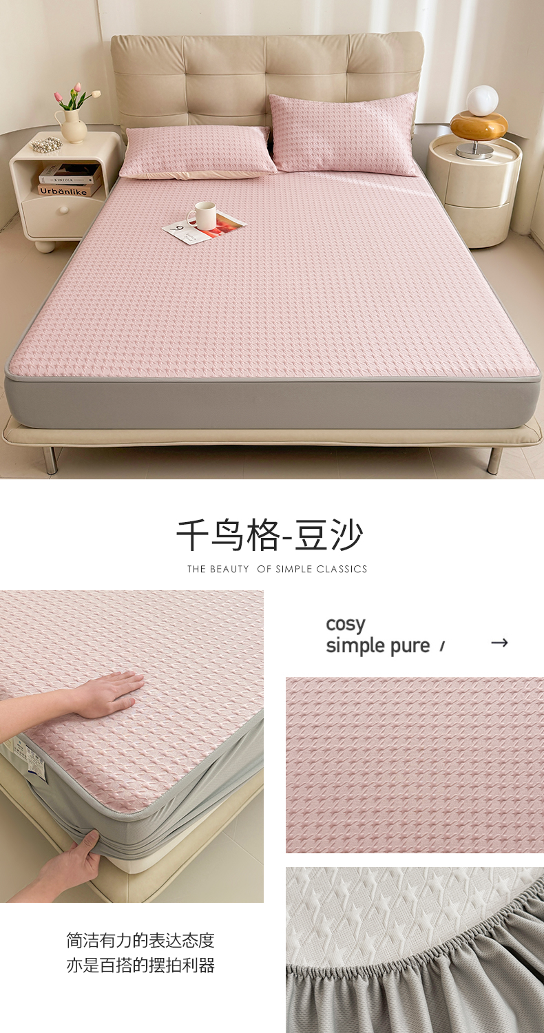 商品名称:恒爱家纺 新款A类亲肤几何鸟冰丝床笠 千鸟格-豆沙