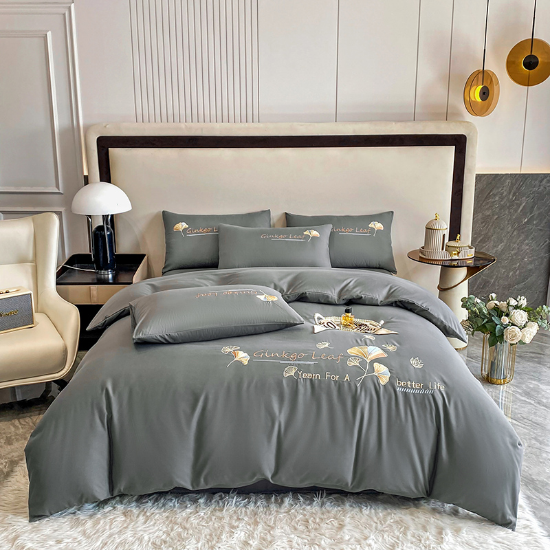 孟鑫 2025新款水洗磨毛刺绣绣花四件套-三生有杏系列 时尚灰