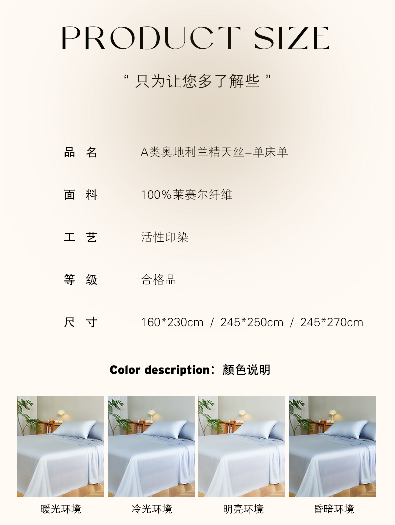 商品名称:云栖家居 202460支A类兰精天丝系列单品床单(风格二) 素雅灰