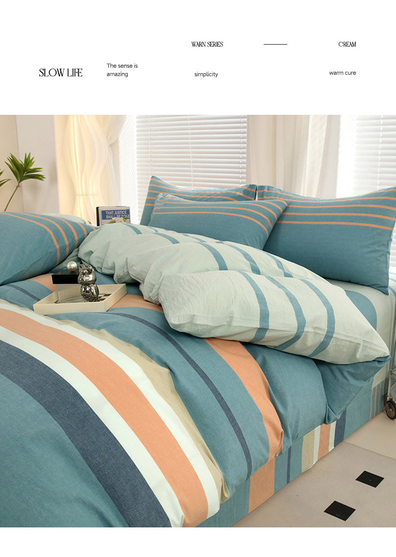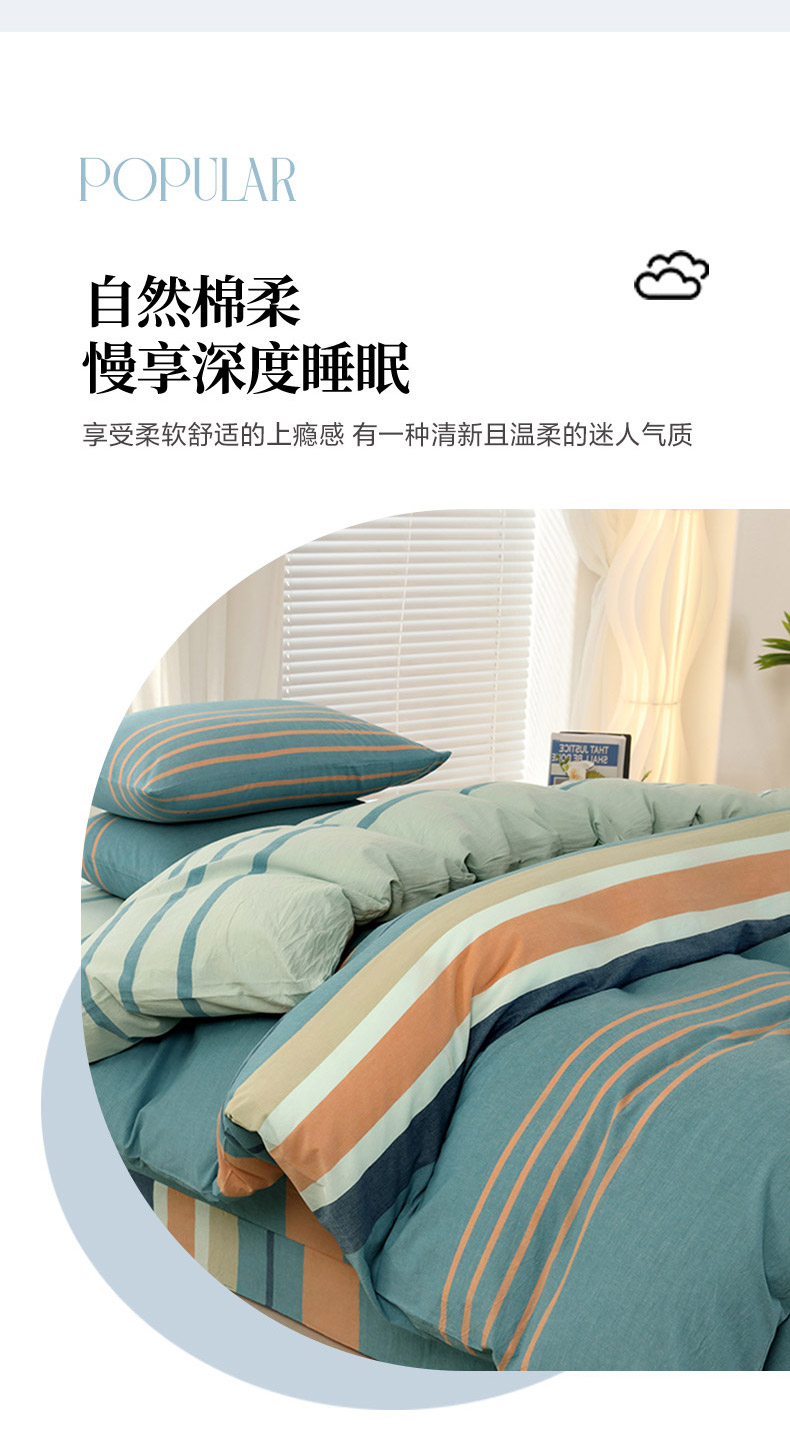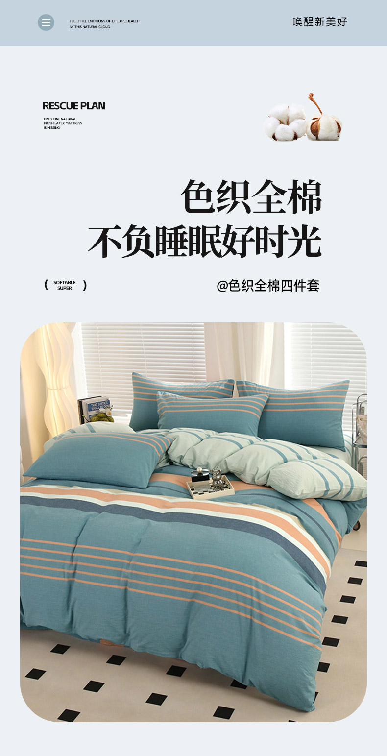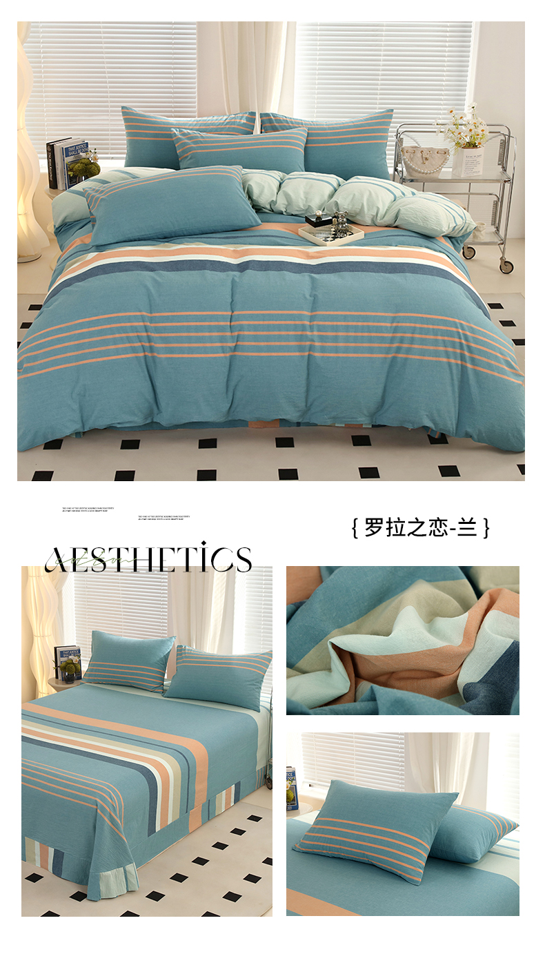 商品名称:金纱玉纺家纺 2024新款色织全棉水洗棉四件套 罗拉之恋-兰