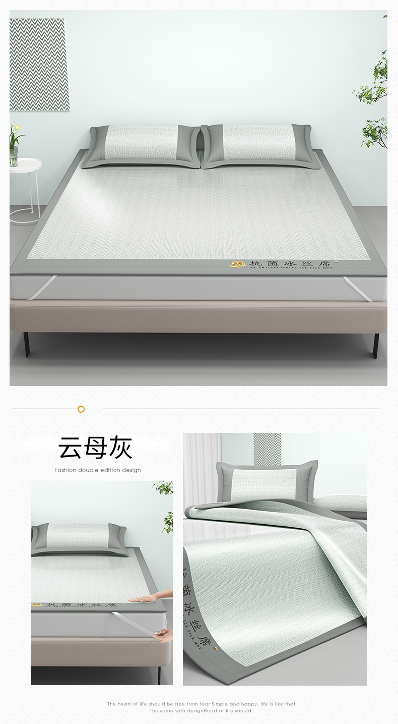 鑫姿席业 2025新款亲肤舒适5A抗菌冰丝席 云母灰(床席款)