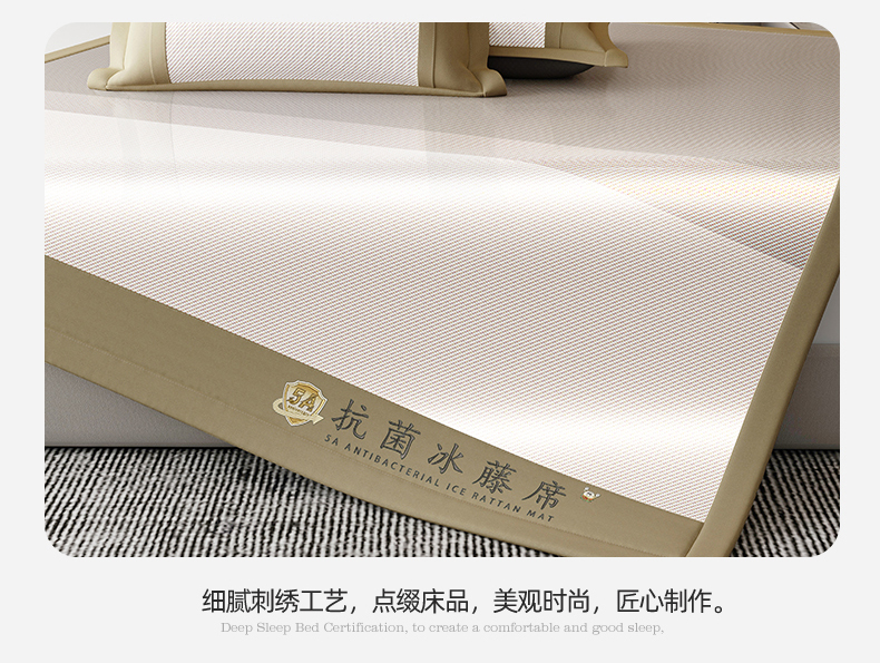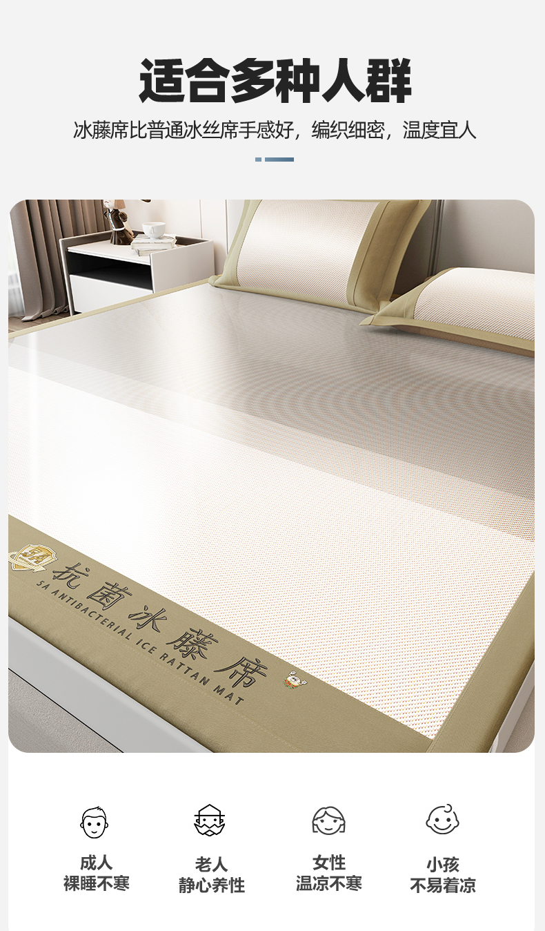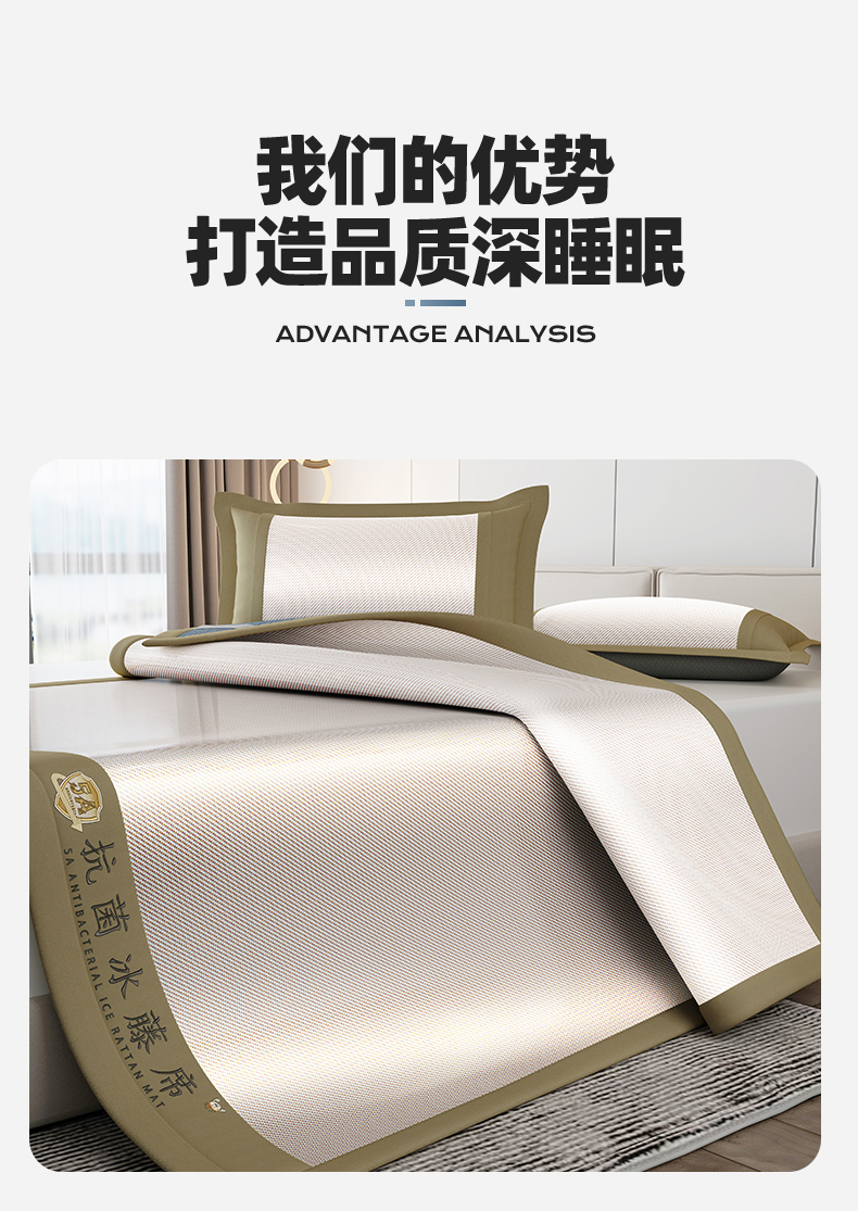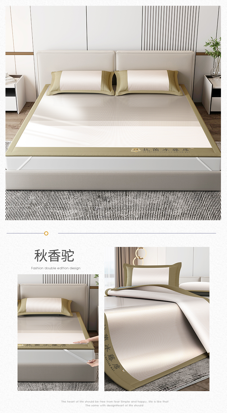 商品名称:鑫姿席业 2025新款渐变款亲肤舒适5A抗菌冰丝席 秋香驼(床席款)
