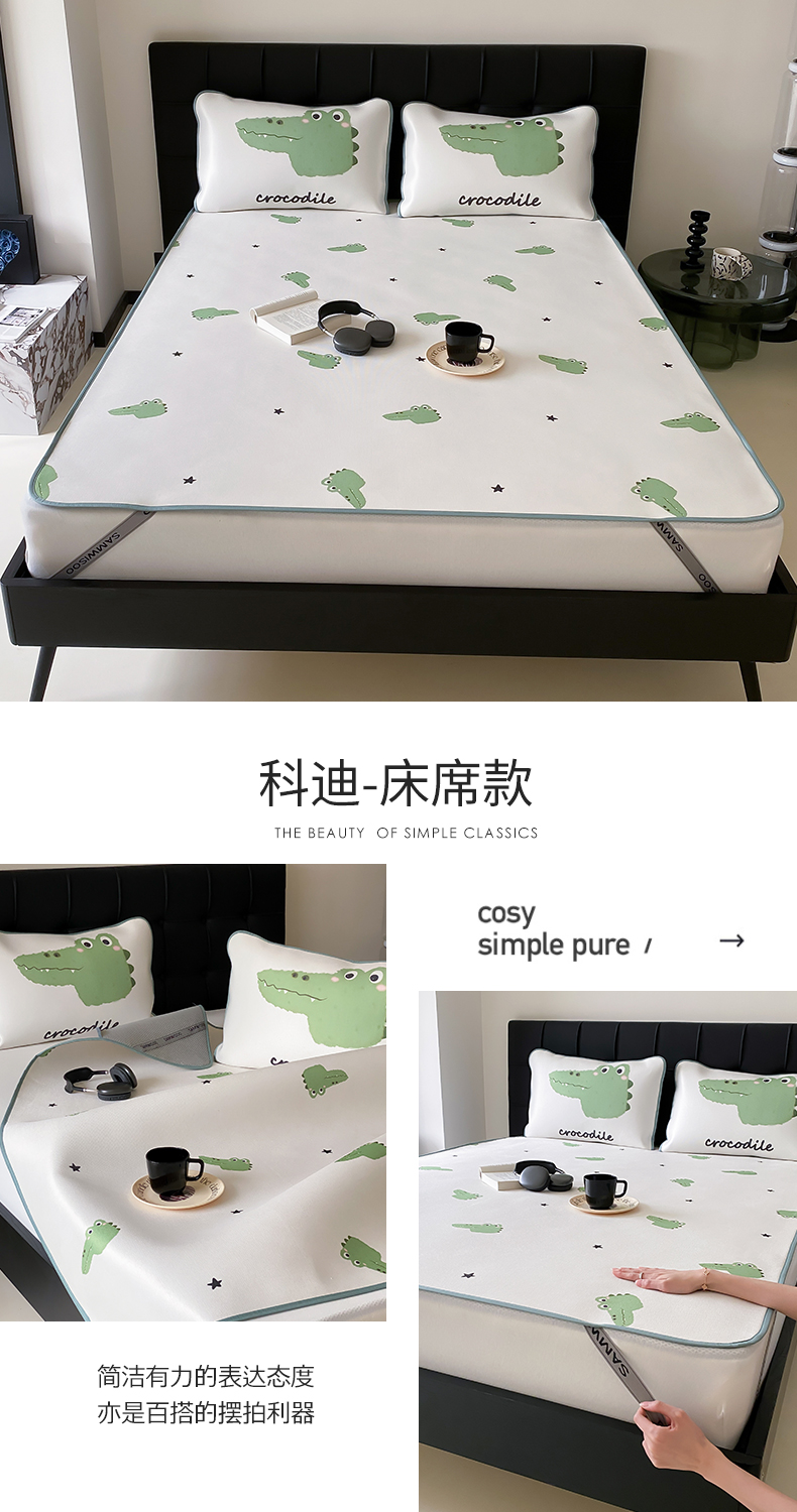 商品名称:三味舒屋 2025新款ins韩风小卡通数码印花冰丝席-床席款 科迪-床席款