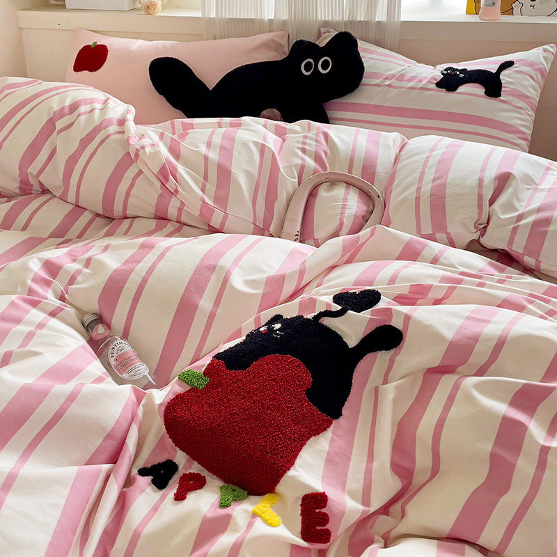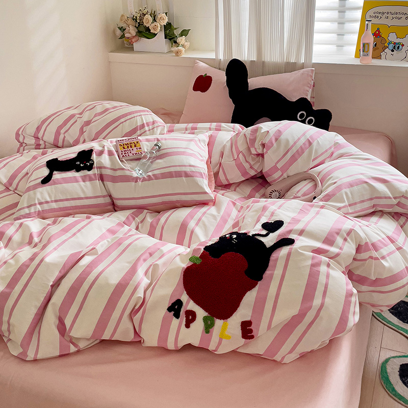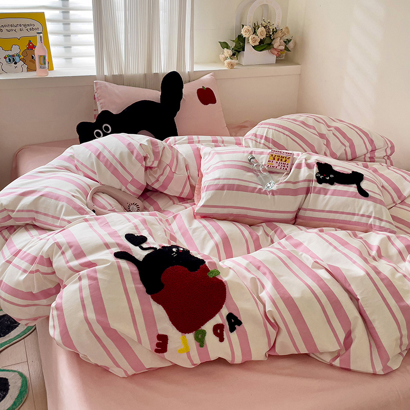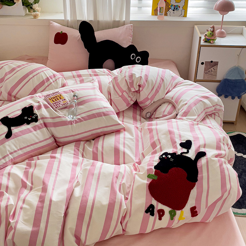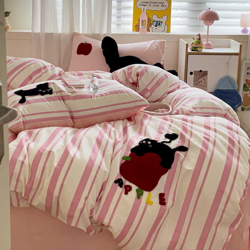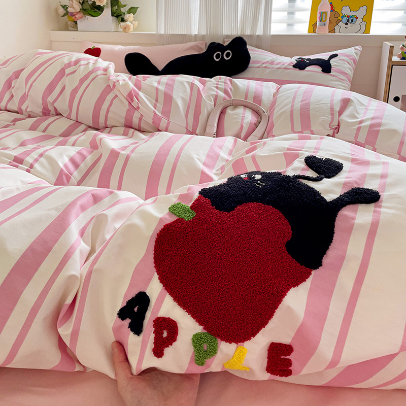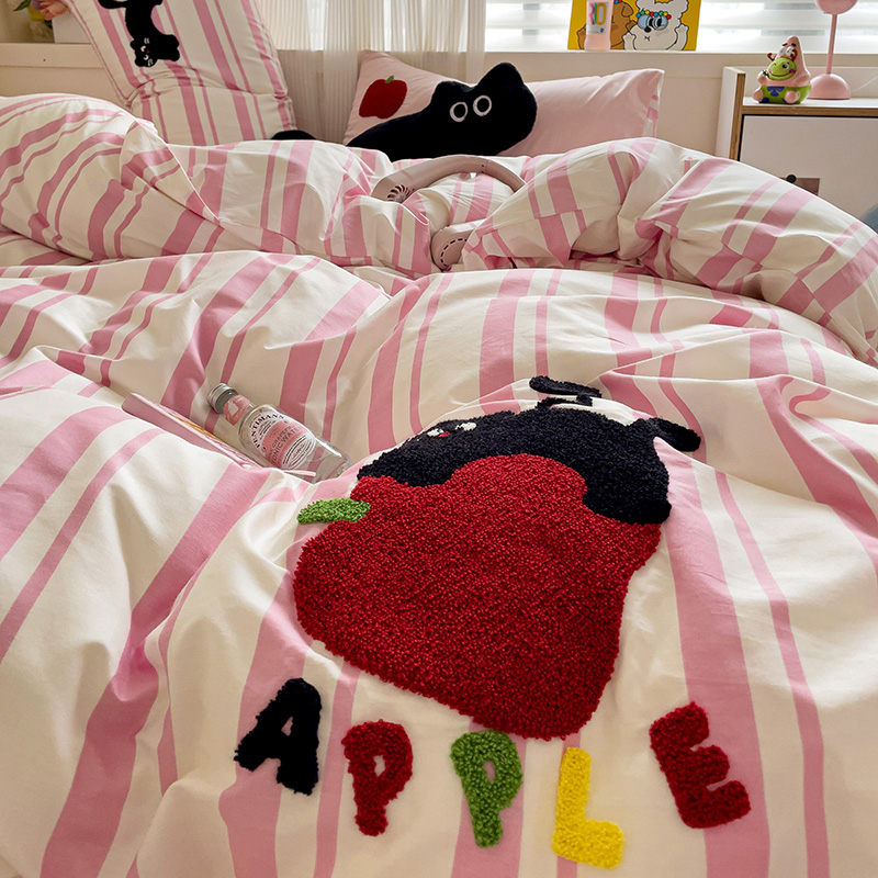 乐童家纺 2024爆款全棉1332呆萌小刺绣系列四件套 苹果猫
