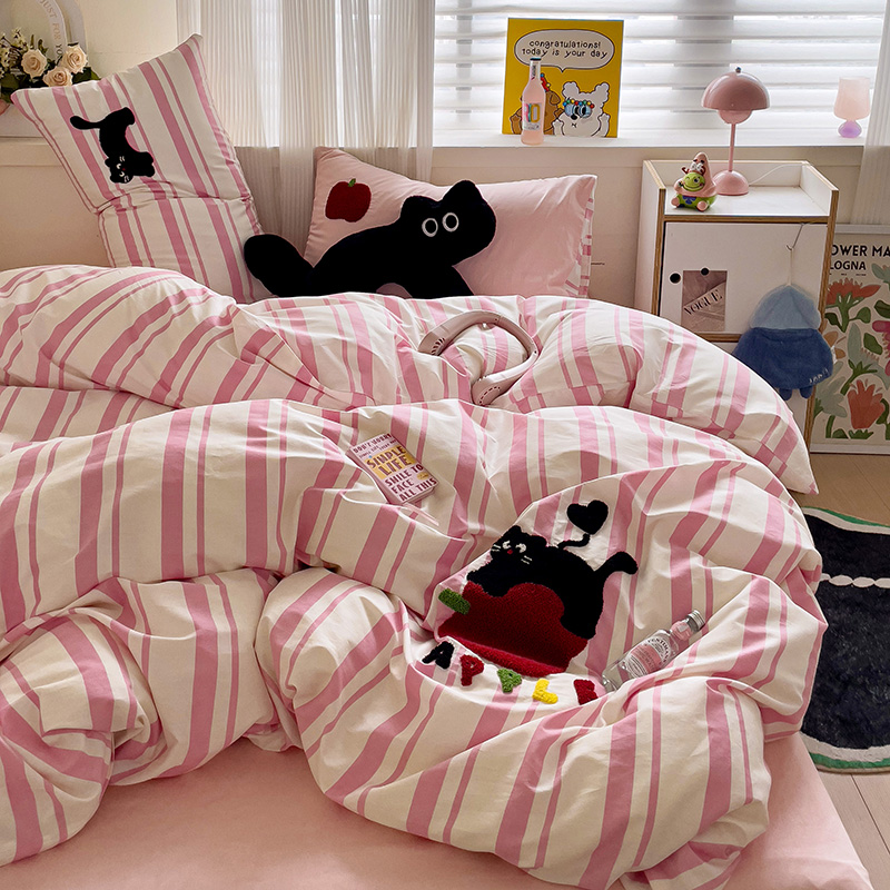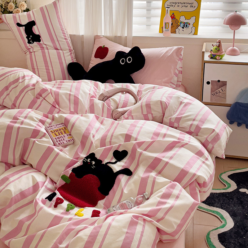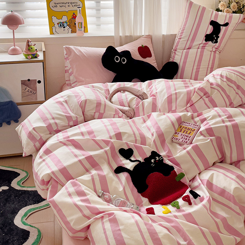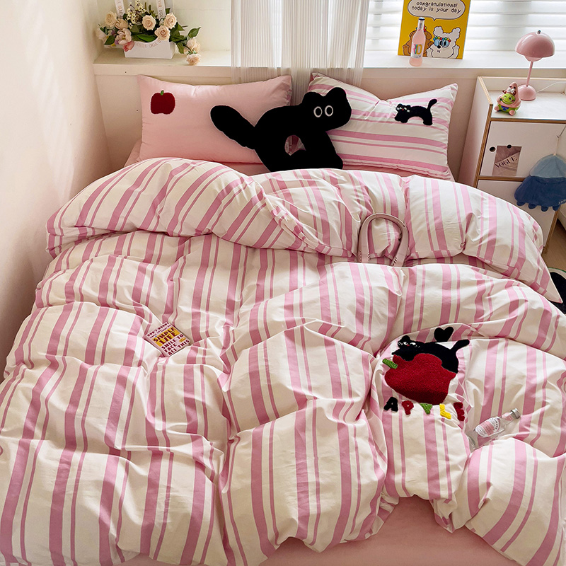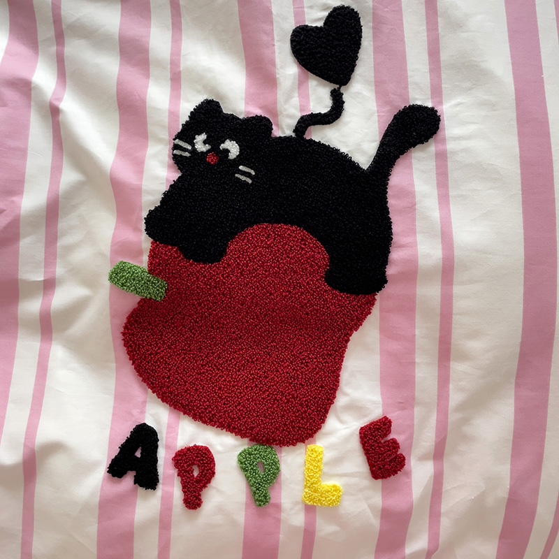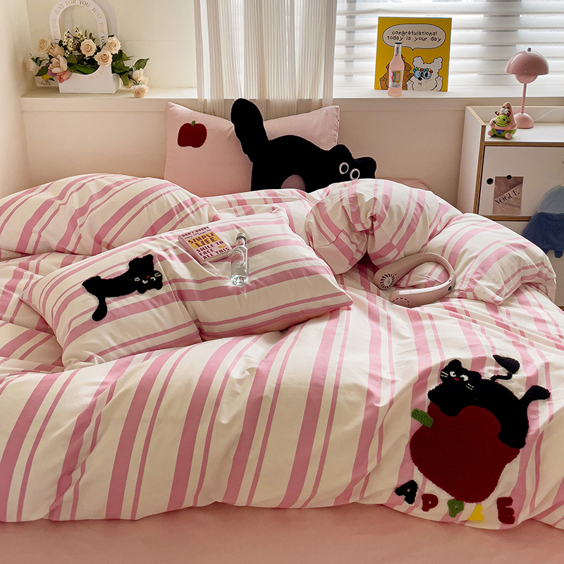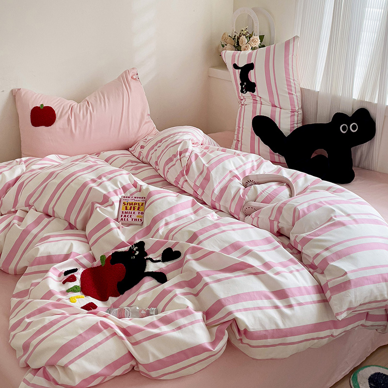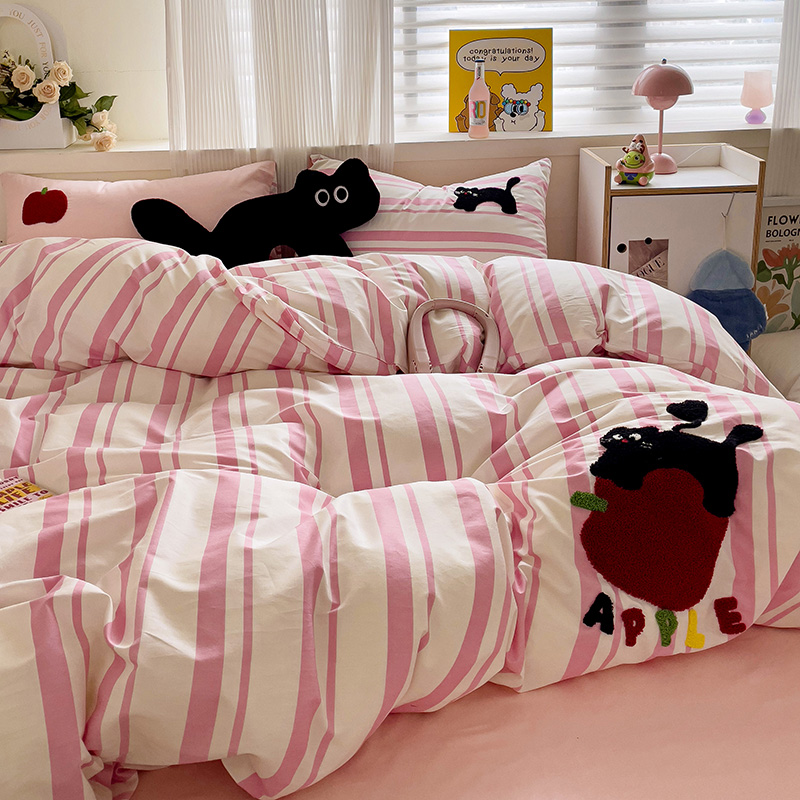 乐童家纺 2024爆款全棉1332呆萌小刺绣系列四件套 苹果猫