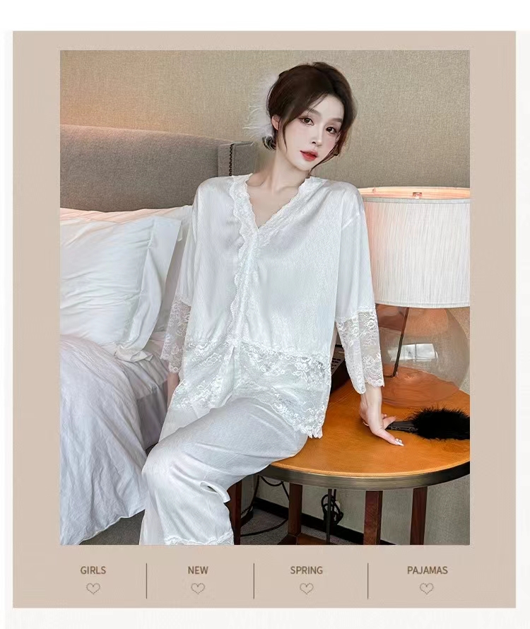 洛兰沙家居馆【只代发】【只代发】 2024新款冰丝蕾丝睡裙 23101-粉色