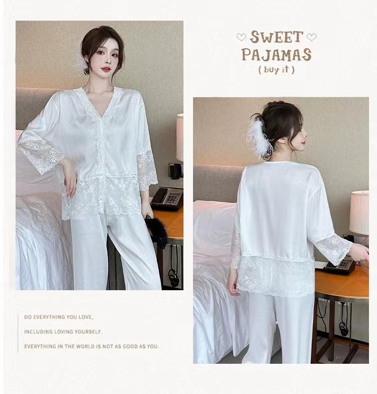 (总)洛兰沙家居馆 2024新款秋冬季清新款睡衣女三层夹棉珊瑚绒加厚保暖两件套女士可外穿加绒家居服,白色